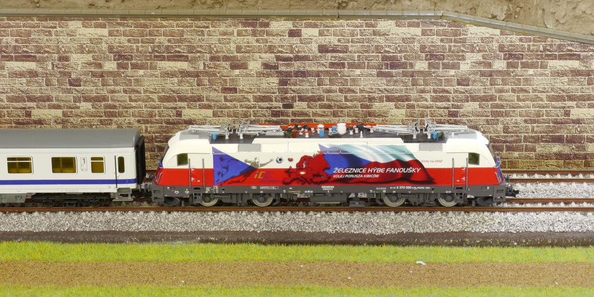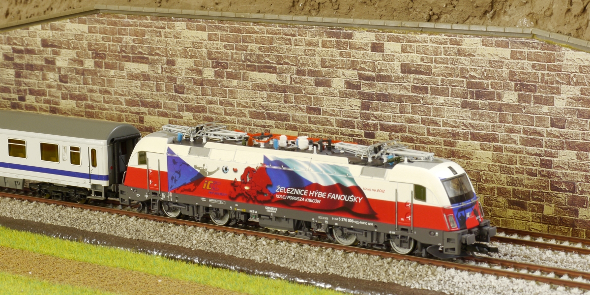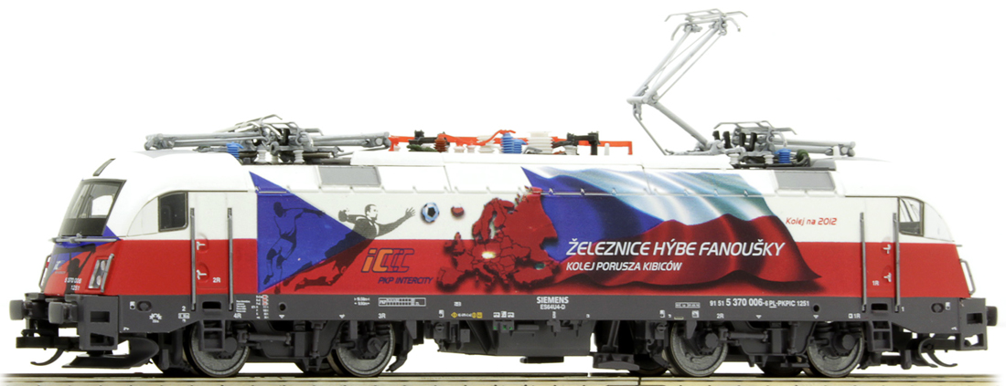 | elektrická lokomotiva ve fotbalovém barevném schematu „Tschechien“ |
