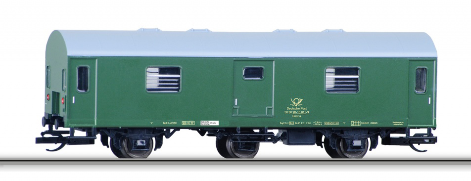 zelený s šedou střechou poštovní vůz