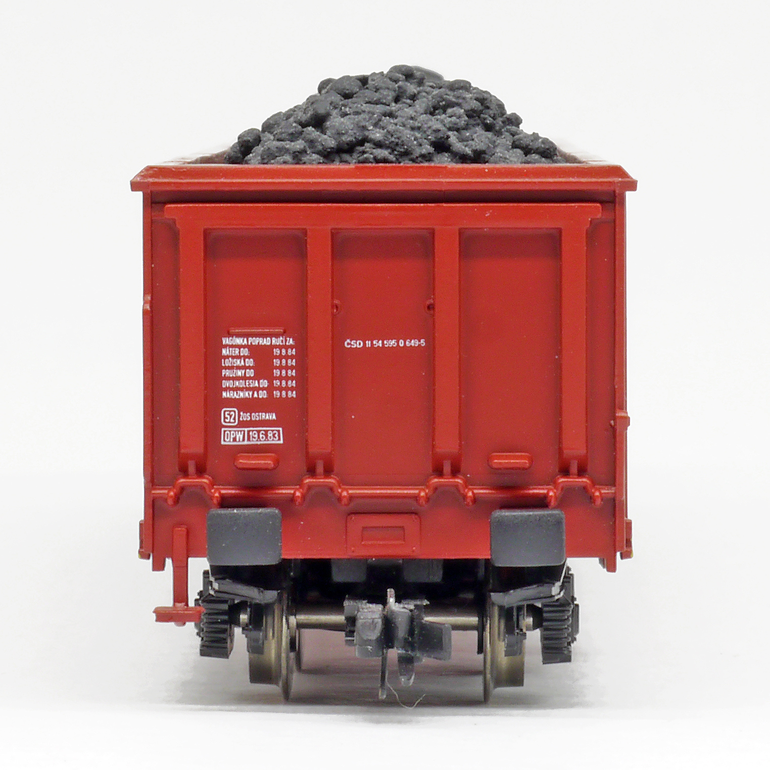 | vysokostěnný nákladní vůz červenohnědý s nákladem uhlí |