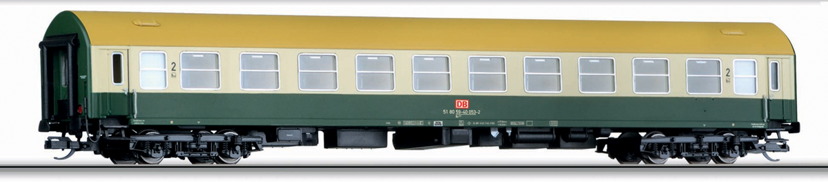 | lehátkový vůz zelený-slonová kost s olivovou střechou 2. tř. |