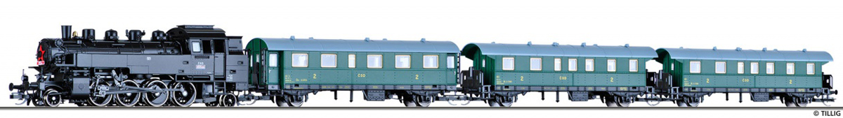 | set parní lokomotivy 455.2 a tří osobních vozů |