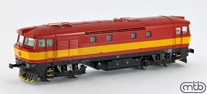 Popis   dieselová lokomotiva červenohnědá s výstražným pruhem, černý rám a pojezd
