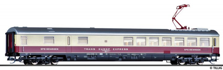| vínový-slonová kost se světle šedou střechou, pantograf |
