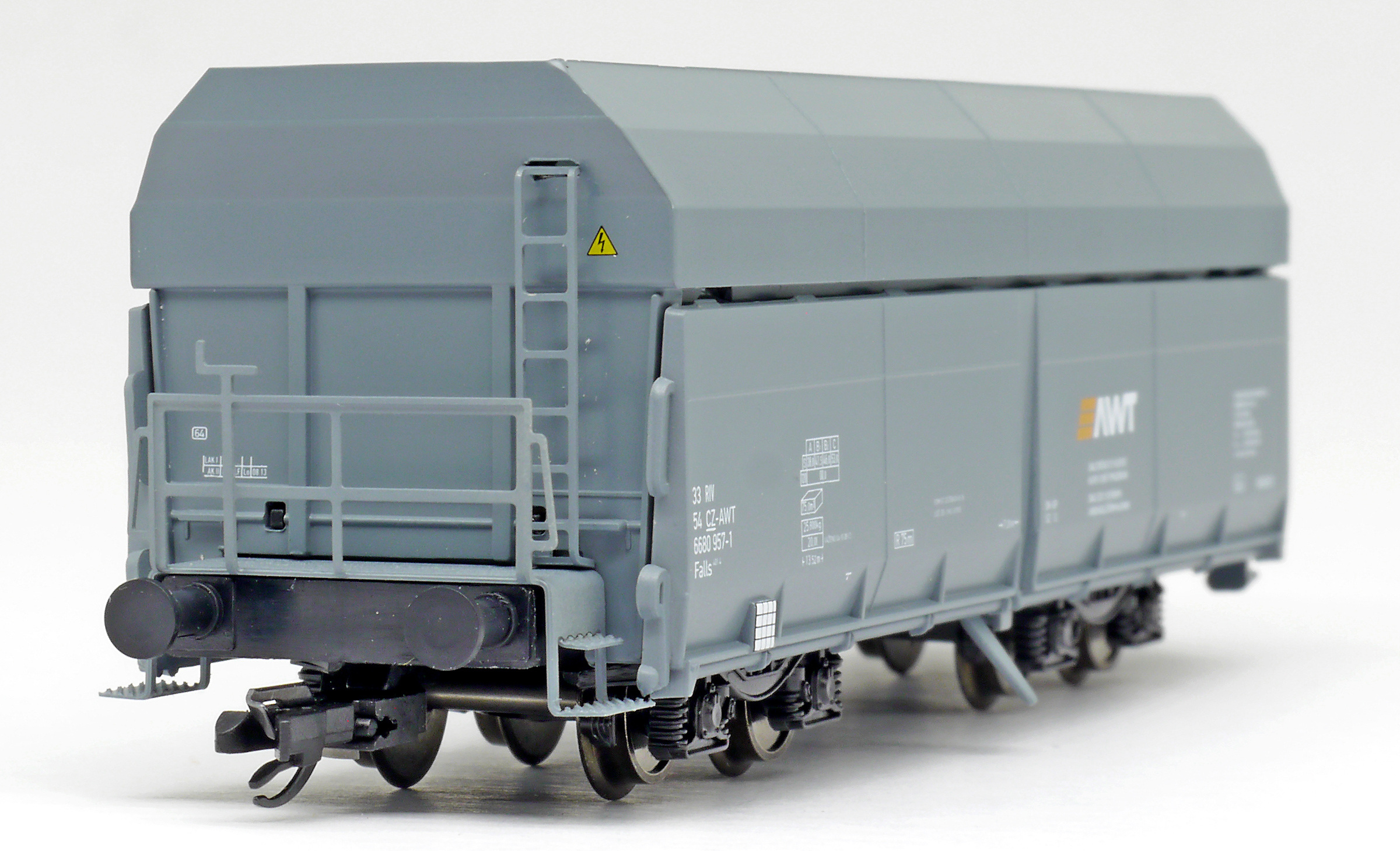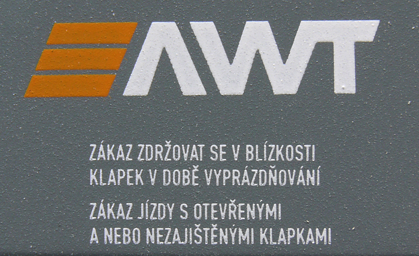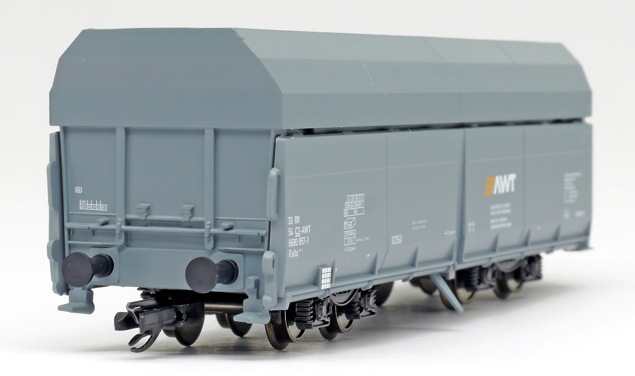 | nákladní samovýsypný vůz šedý s logem „AWT“ |