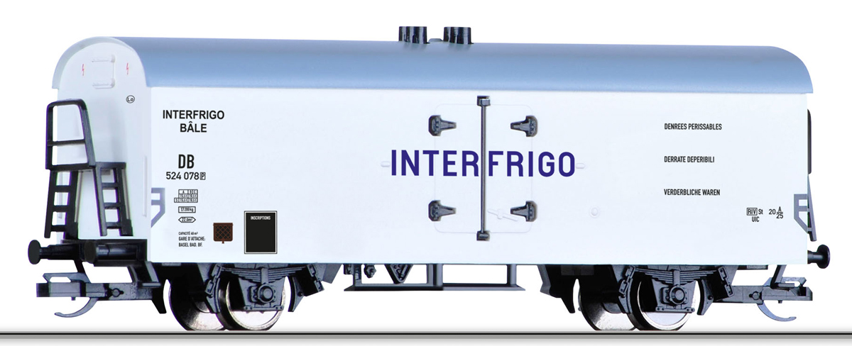| bílý chladící vůz s šedou střechou „INTERFRIGO“ |