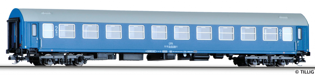 | rychlíkový vůz modrý s šedou střechou 2. tř. |