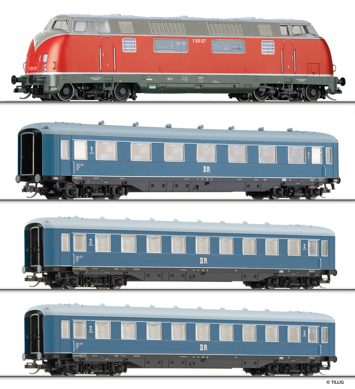 | set dieselové lokomotivy V 200 a tří rychlíkových vozů „60 Jahre Zeuke“ |