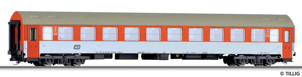 | rychlíkový vůz červený-bílý s šedou střechou 2. tř. |