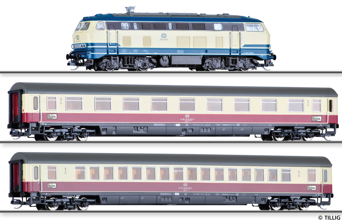 | set dieselové lokomotivy BR 218 a dvou rychlíkových vozů „TEE Merkur“ |