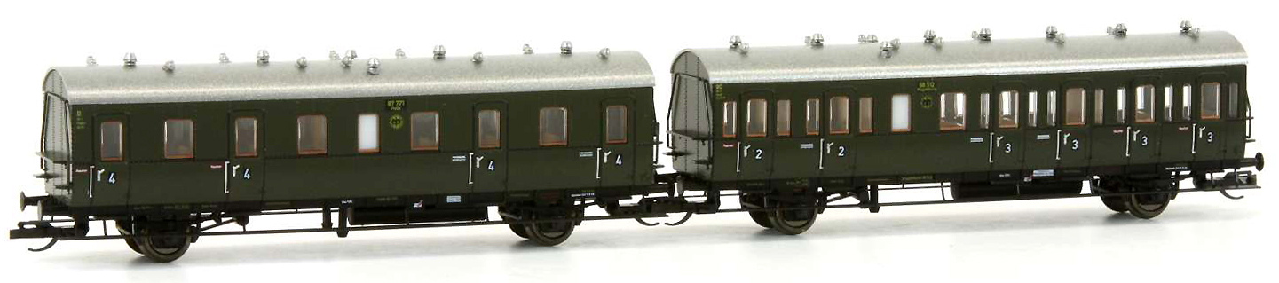| osobní oddílový vůz zelený se stříbřitou střechou 2./3. tř. |