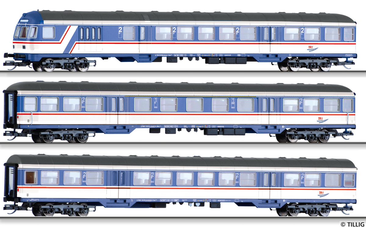 | rychlíkový vůz v barevném schematu „TRI Train Rental International GbR“ 1./2. tř. |