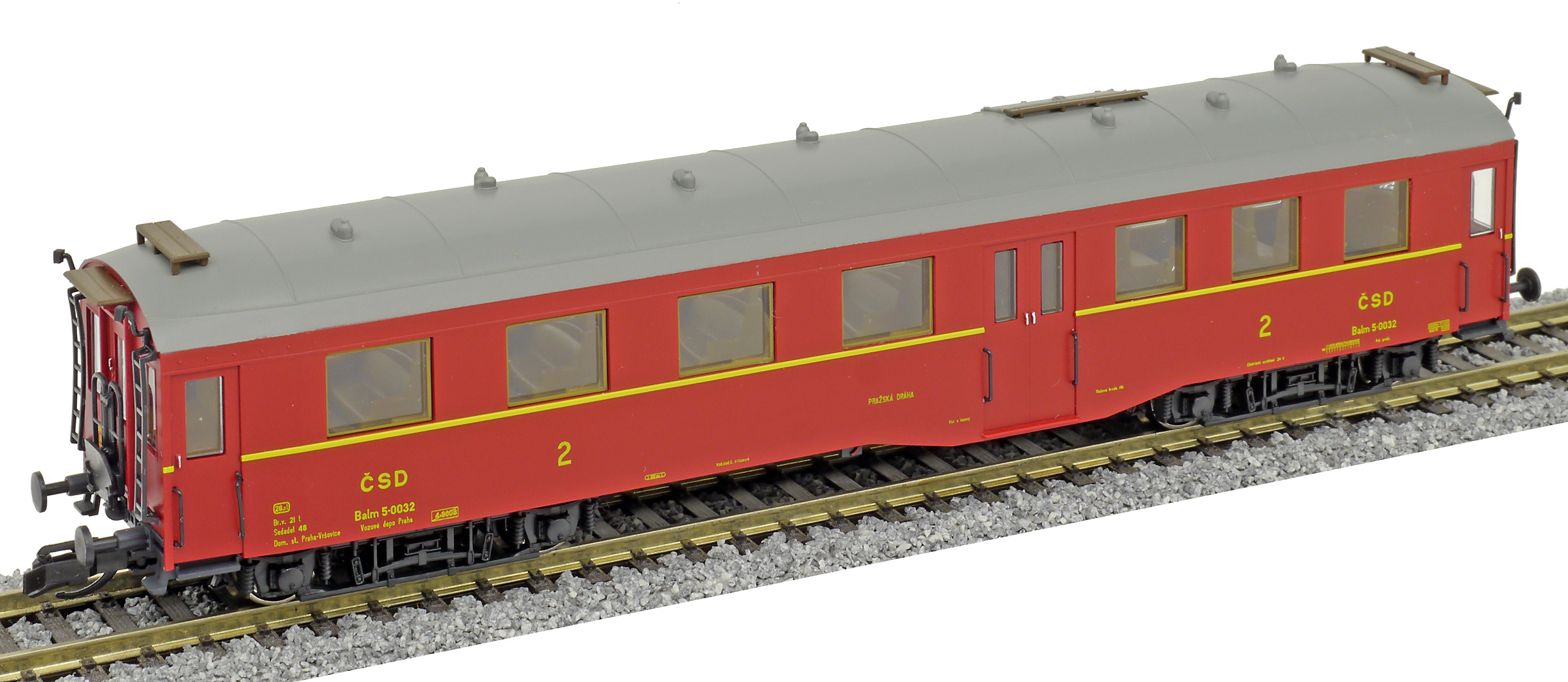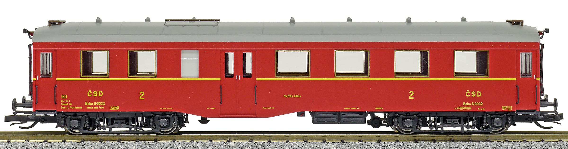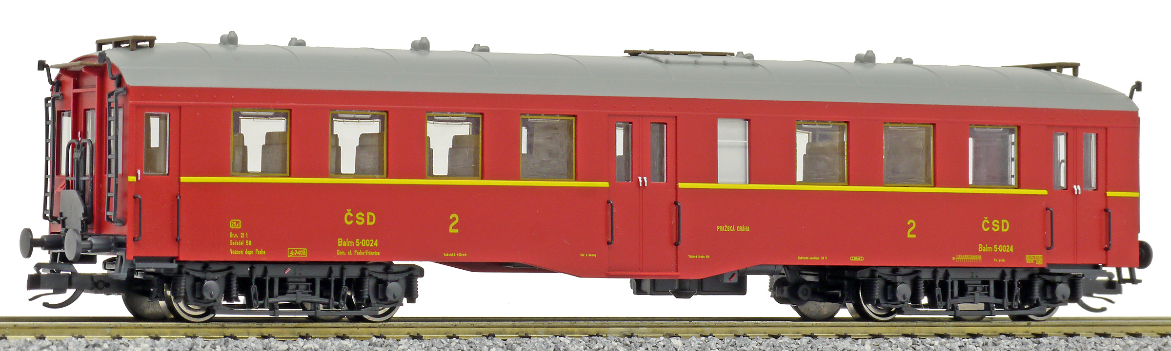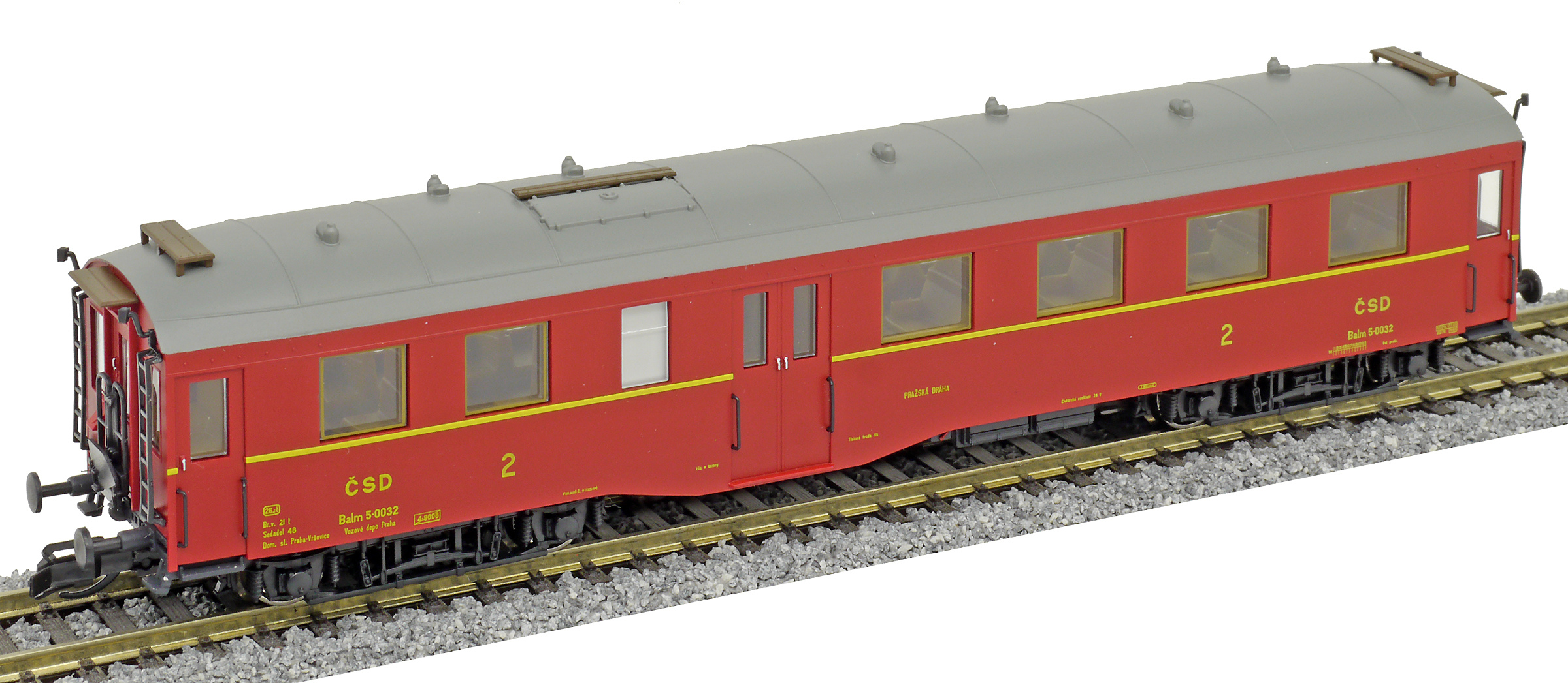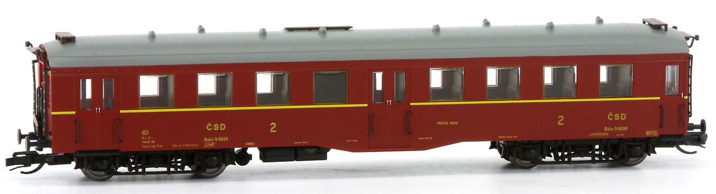 | osobní vůz červenohnědý s šedou střechou 2. tř. |