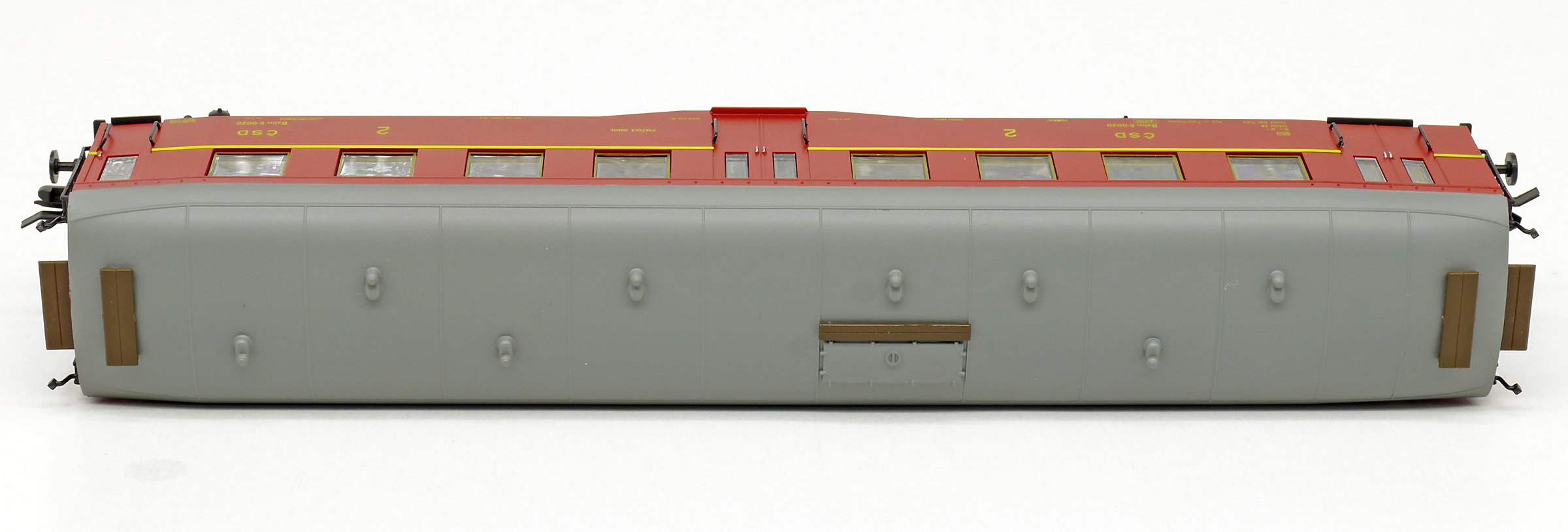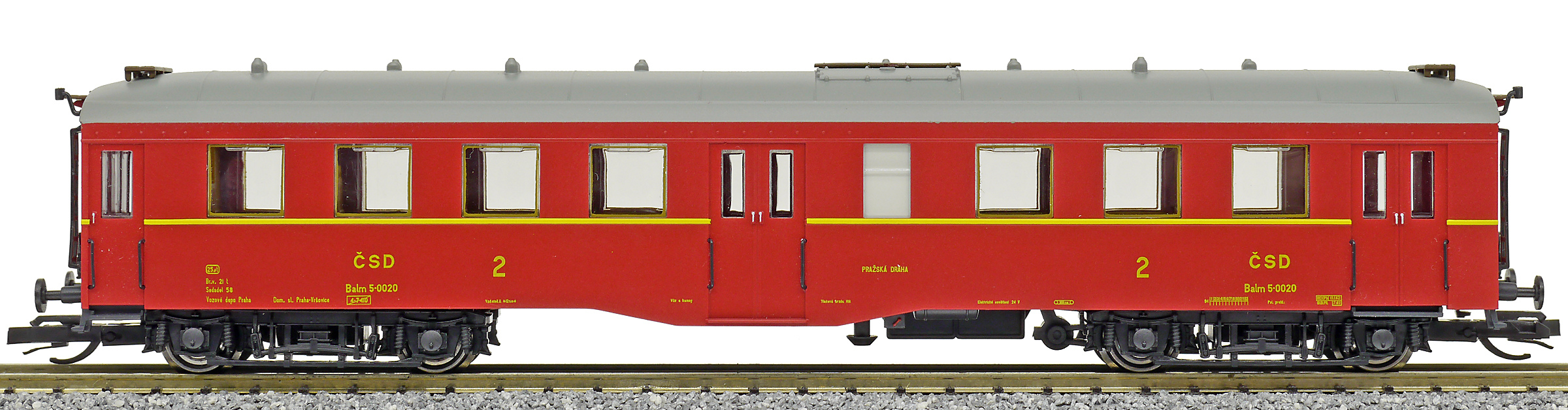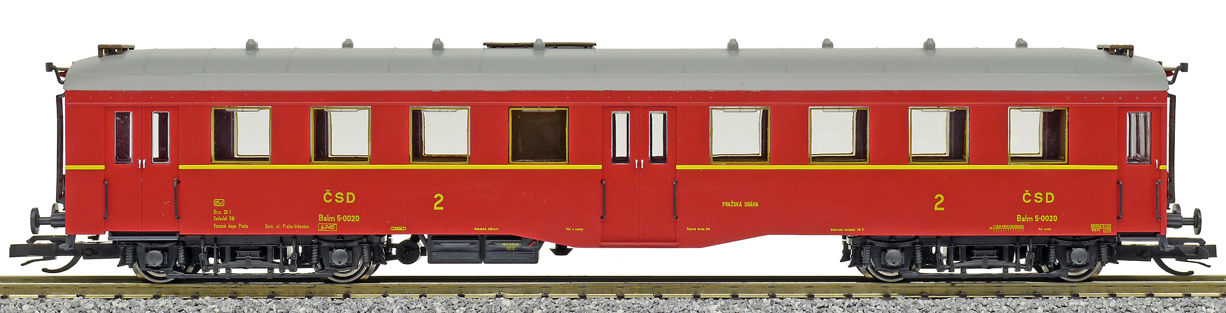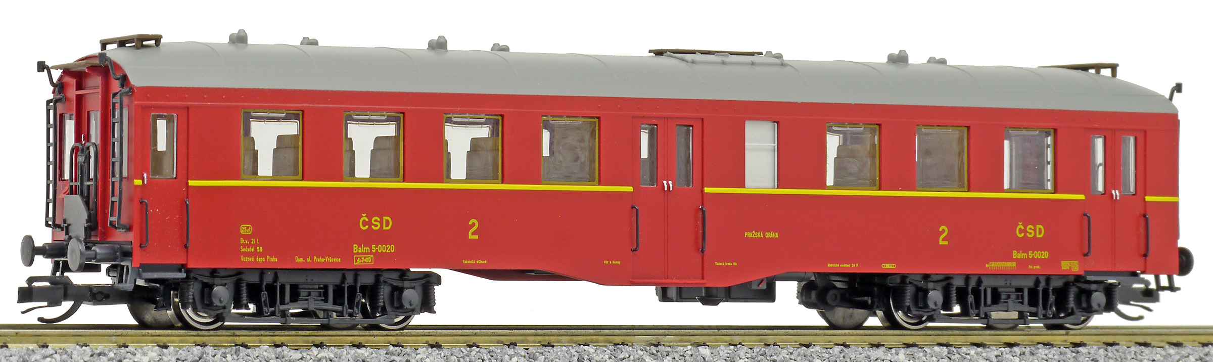 | osobní vůz červenohnědý s šedou střechou 2. tř. |