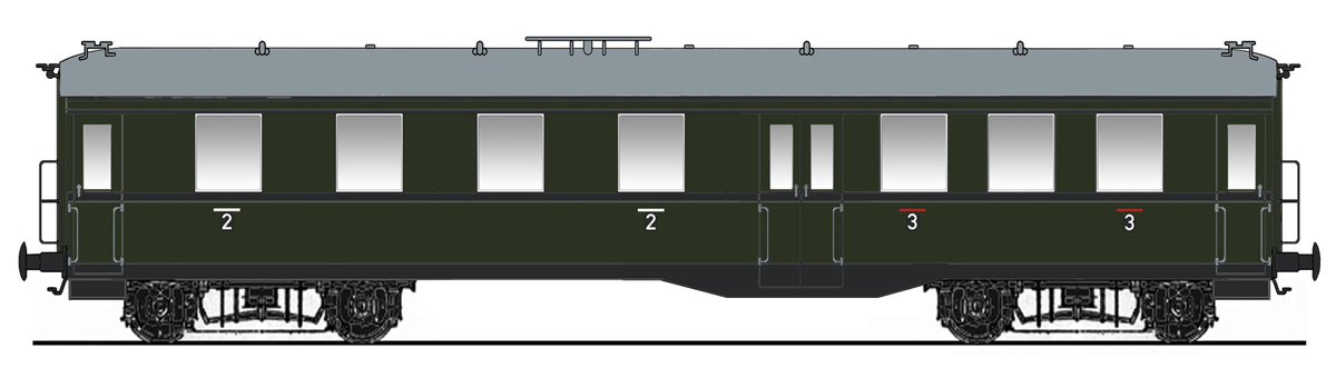 | osobní vůz zelený s šedou střechou 2./3. tř. |