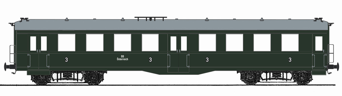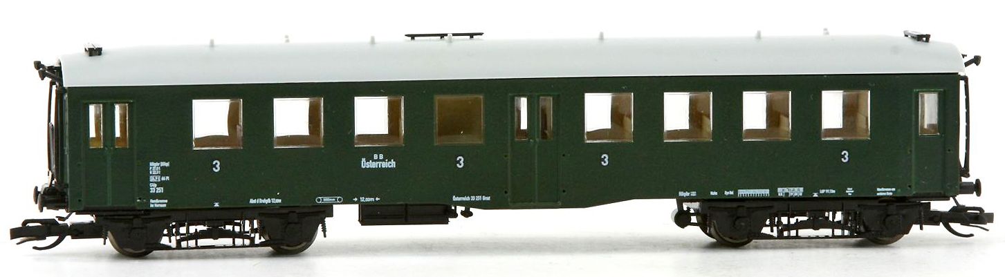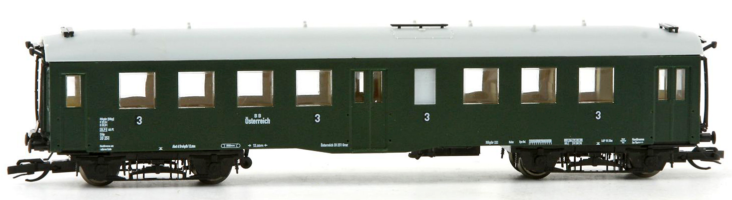 | osobní vůz zelený s šedou střechou 3. tř. |