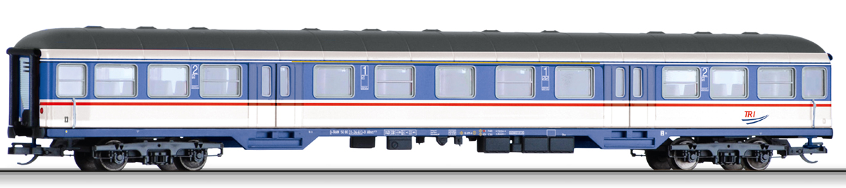 | rychlíkový vůz v barevném schematu „TRI Train Rental International GbR“ 1./2. tř. |