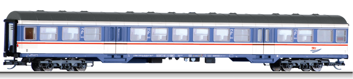 | rychlíkový vůz v barevném schematu „TRI Train Rental International GbR“ 2. tř. |