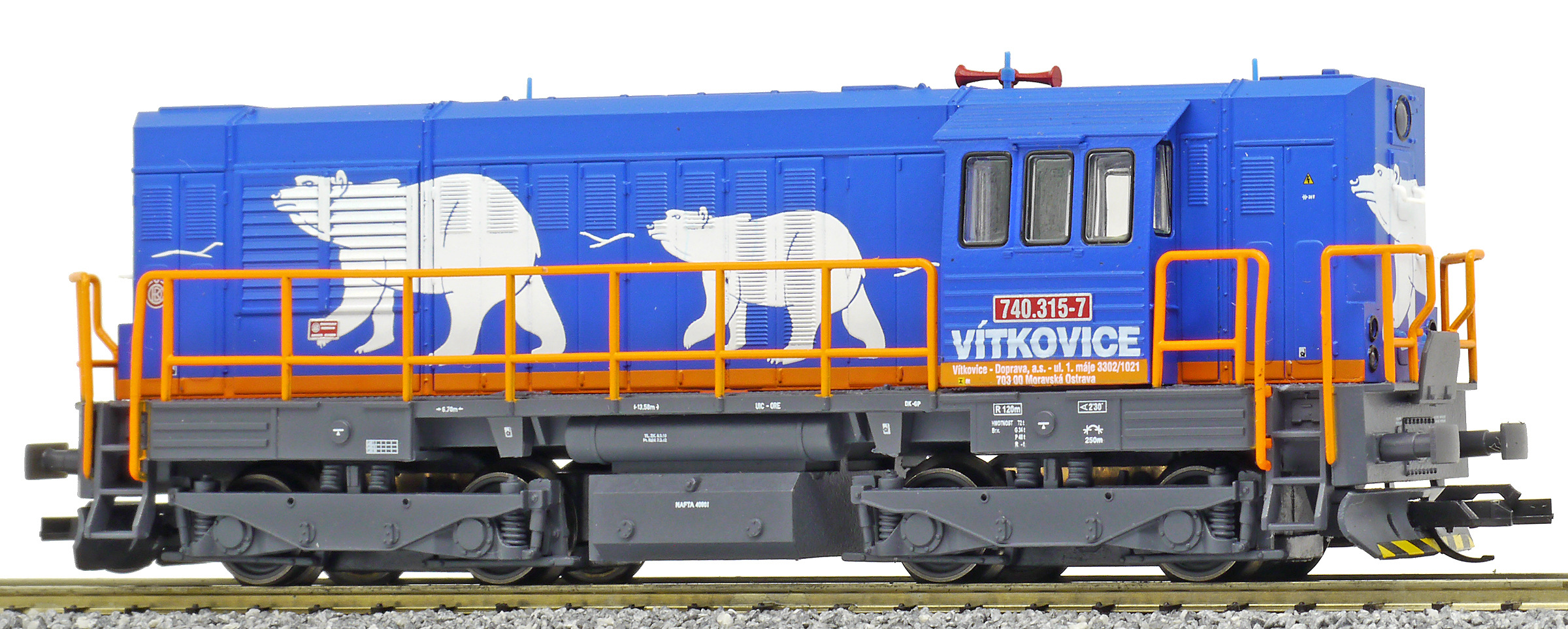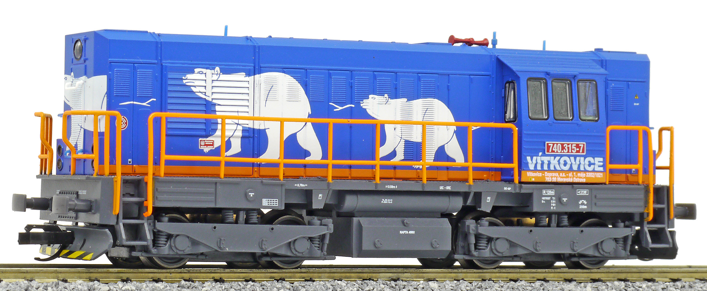 měřítko 1:120 - rozchod kolejí 12 mm osvětlení - 3 reflektory vpředu, 2 světla vzadu, přepínatelné podle směru jízdy 4 hnané nápravy 2 bandážované nápravy kinematika krátkého spřáhla (KKK) podle normy NEM 358 digitální rozhraní podle NEM 662 s konektorem Next18 setrvačník 113 mm - celková délka modelu přes nárazníky 4 - celkový počet náprav nebo rozložení náprav 150 g - hmotnost brutto - model včetně prodejního obalu