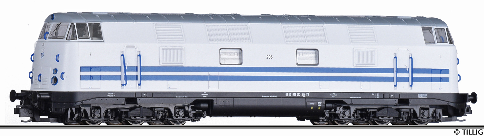 Popis   dieselová lokomotiva bílá s modrými proužky, černý rám a pojezd