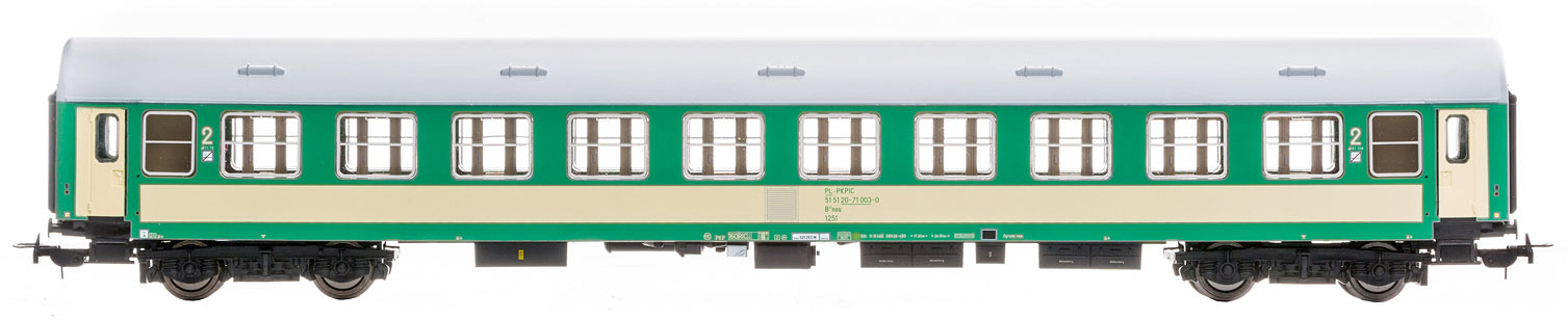 | rychlíkový vůz zelený-slonová kost s šedou střechou 2. tř. |