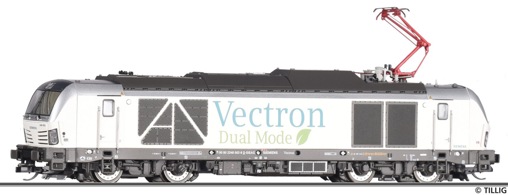 | dieselová/elektrická lokomotiva bílá s potiskem „Vectron Dual Mode Demonstrator“ |