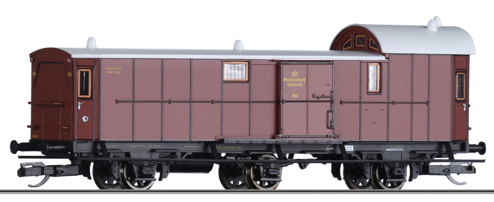 | zavazadlový vůz červenohnědý se světle šedou střechou |