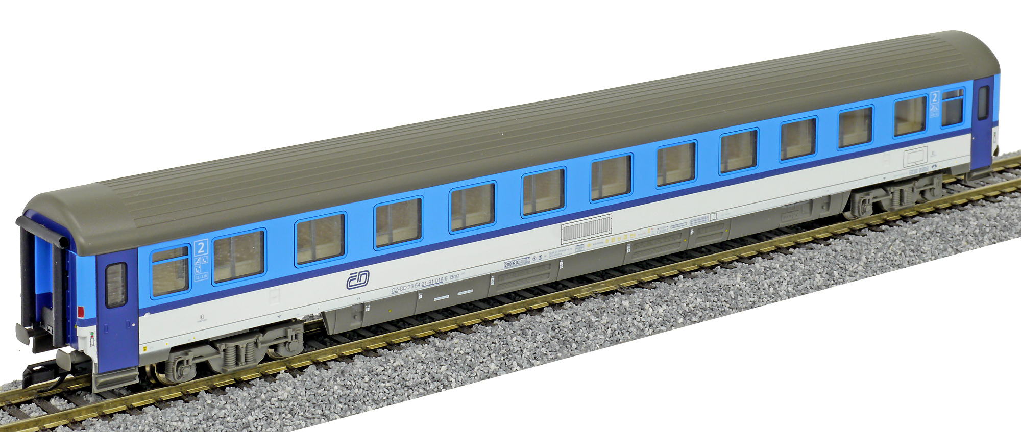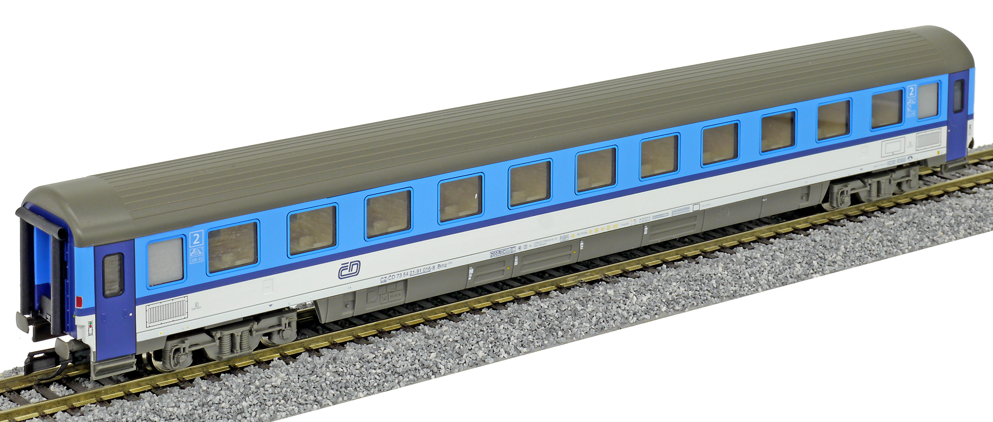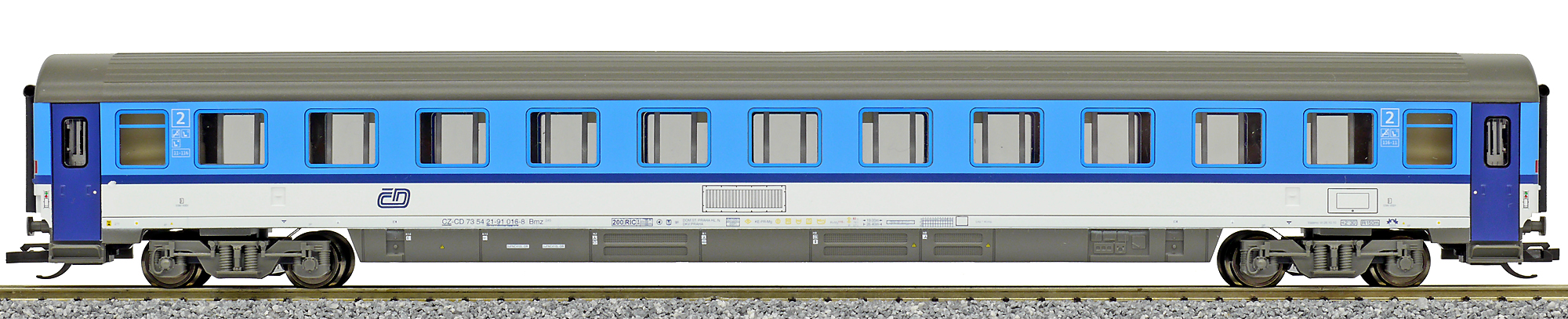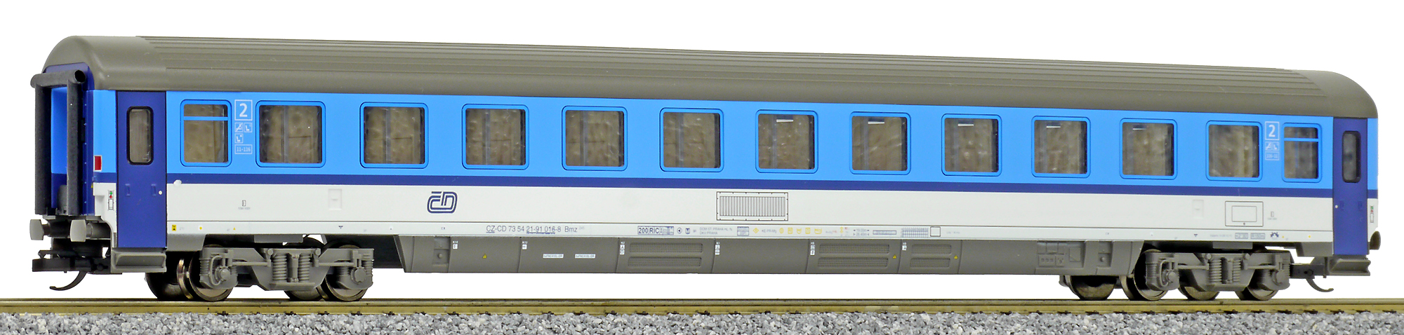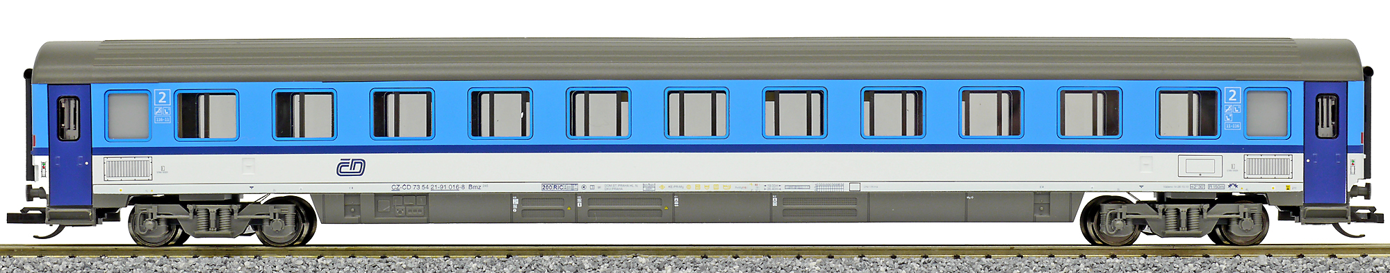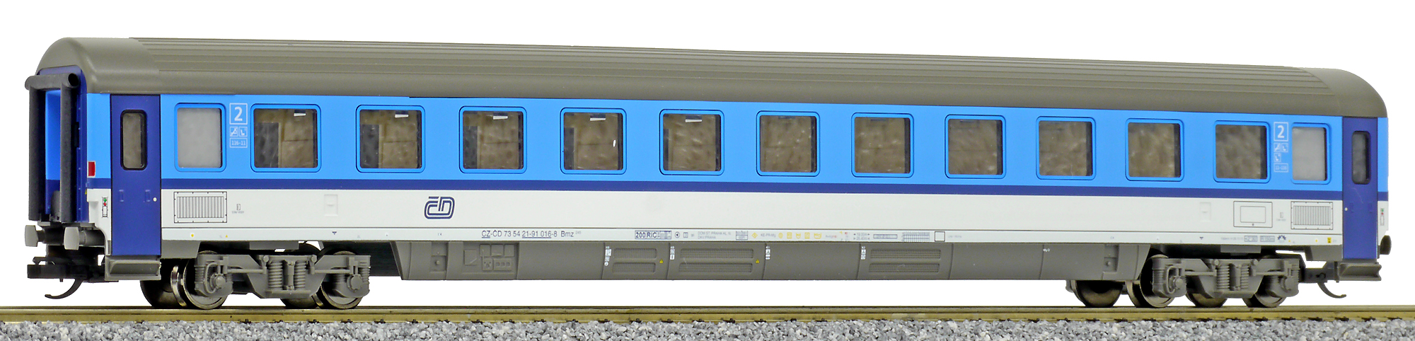 | rychlíkový vůz v barevném schematu „Najbrt“ 2. tř. |