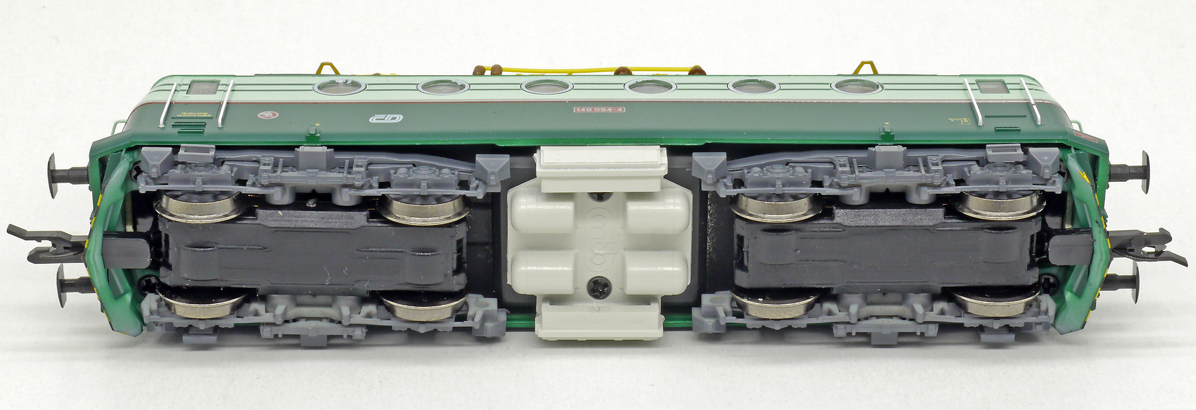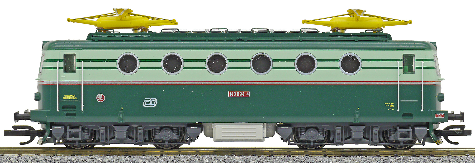 Popis   elektrická lokomotiva v nátěru tmavě zelená-světle zelená, žluté pantografy