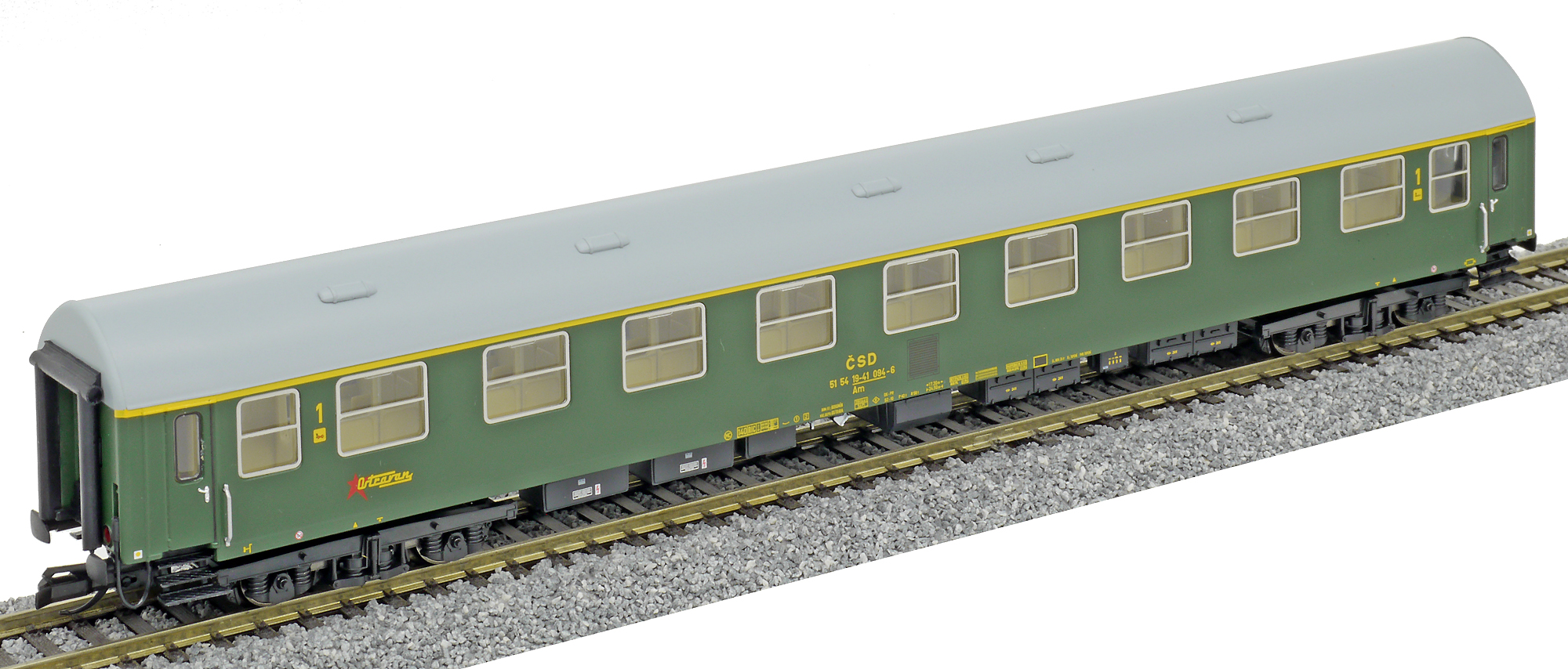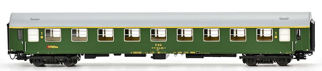 | rychlíkový vůz zelený s šedou střechou 1. tř. „Ostravan“ |