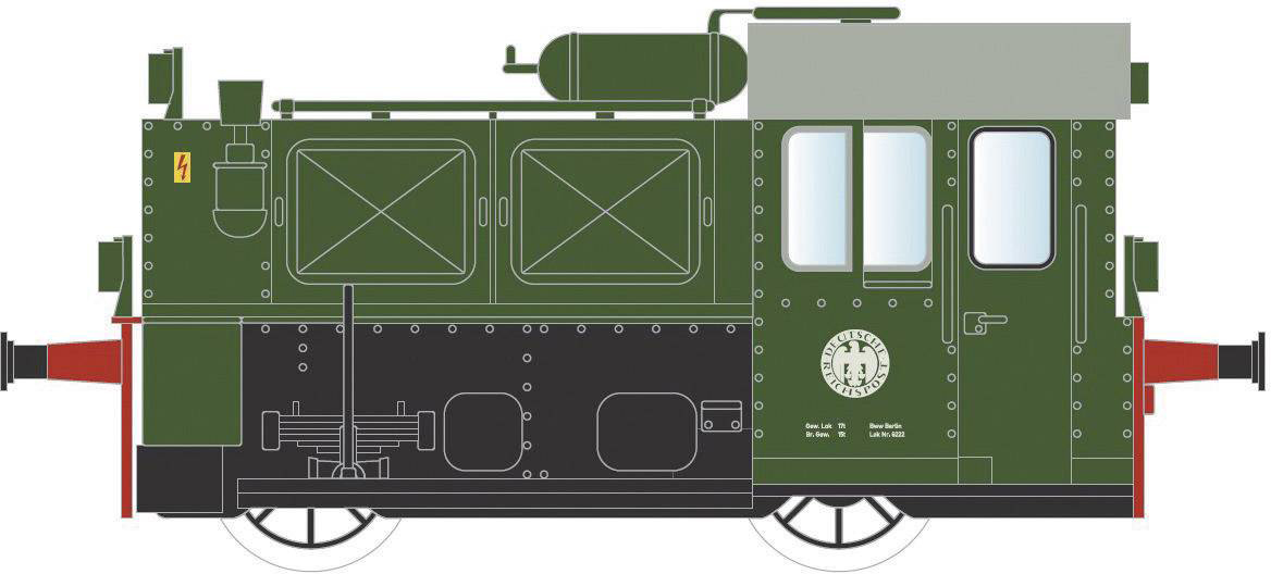 | dieselová lokomotiva zelená-černá s červenými čely Köf II |
