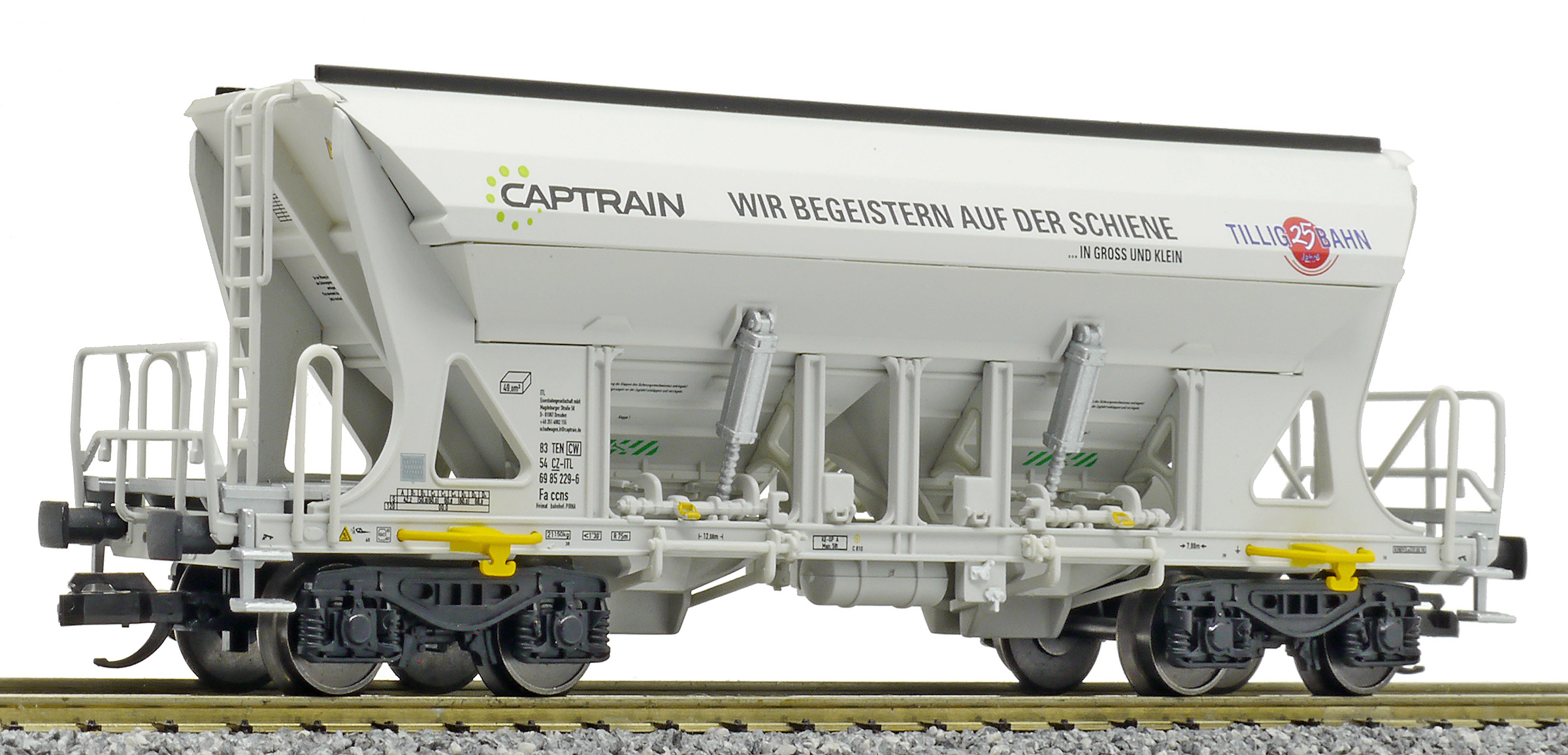| nákladní samovýsypný vůz šedý s potiskem „Captrain/TILLIG“ |