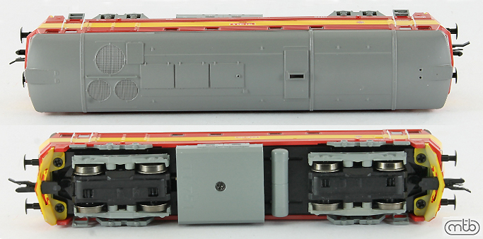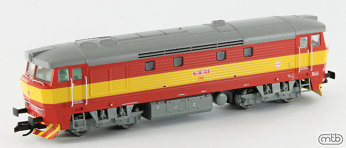 Popis   dieselová lokomotiva červená se žlutým výstražným pruhem