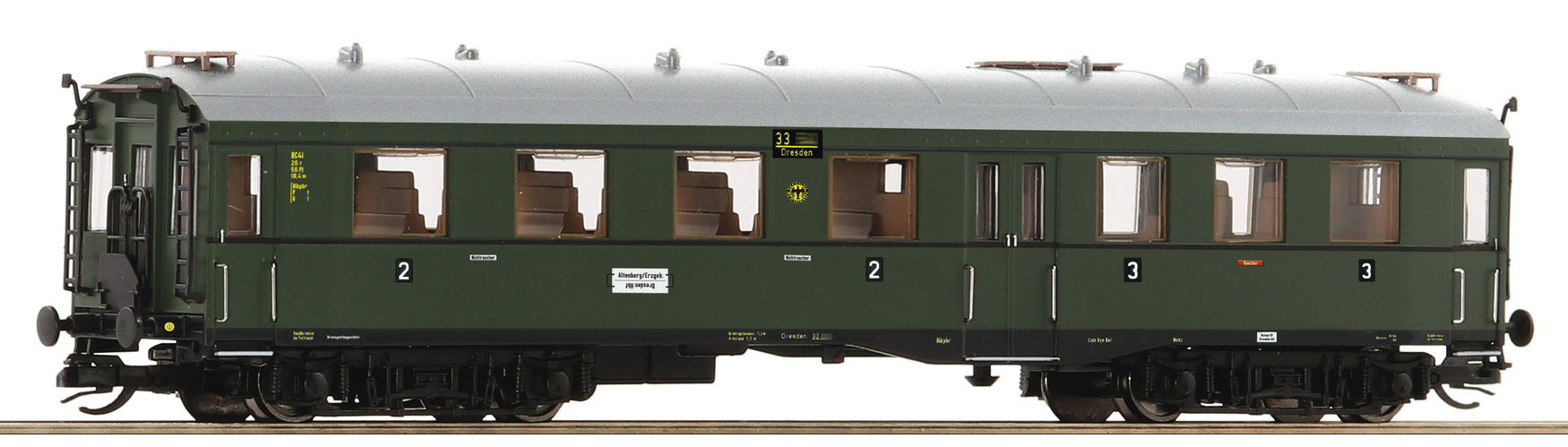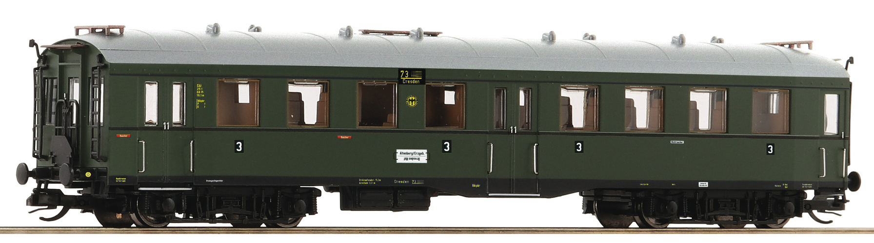 | osobní vůz tmavě zelený s šedou střechou 2./3. tř. |