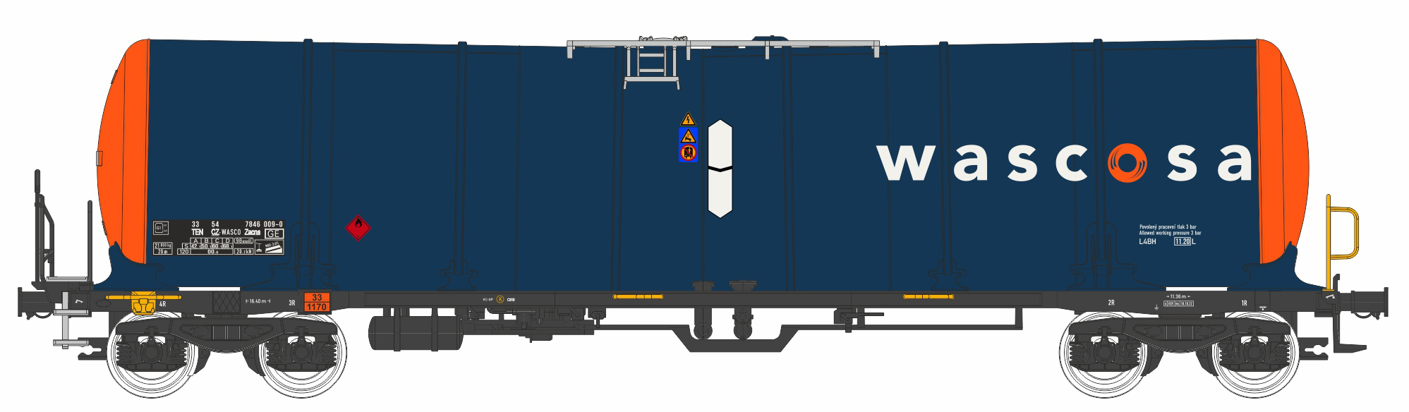 | kotlový vůz modrý-oranžový s logem „wascosa“ |