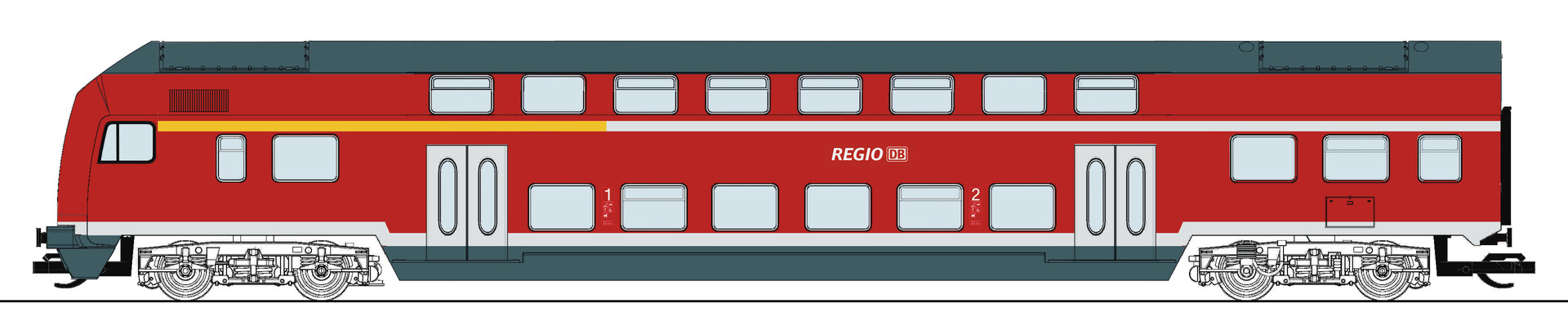 | řídící patrový vůz v barvách „Regio DB“ 1./2. tř. |