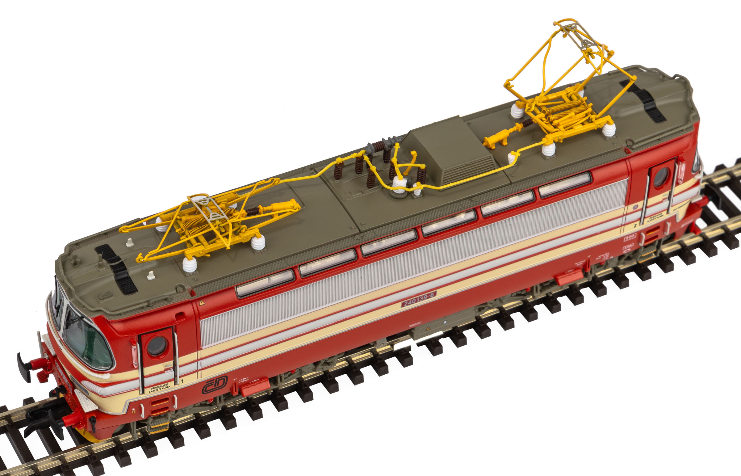 Popis   elektrická lokomotiva v barevné kombinaci červená-krémová, šedá střecha