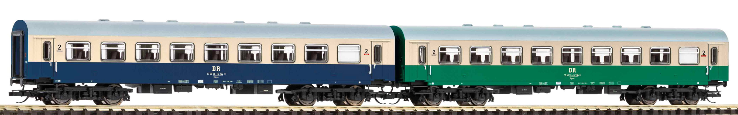 | set dvou rekonstruovaných osobních vozů v experimentálním nátěru |