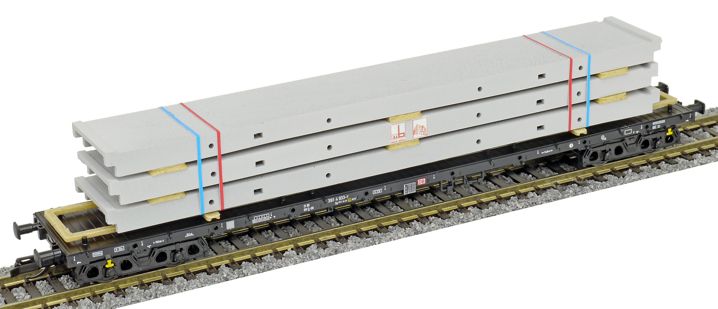| nákladní plošinový vůz ložený korýtkovými stropními panely |