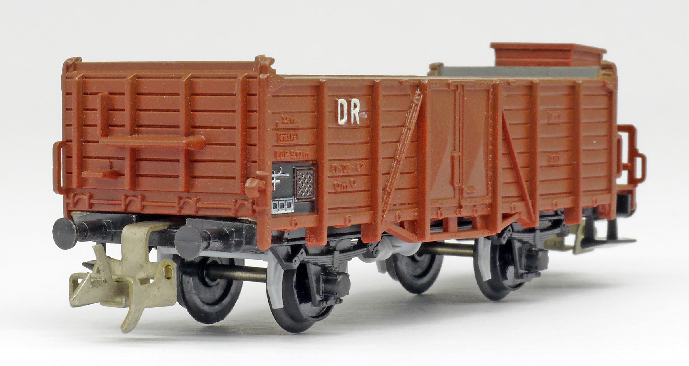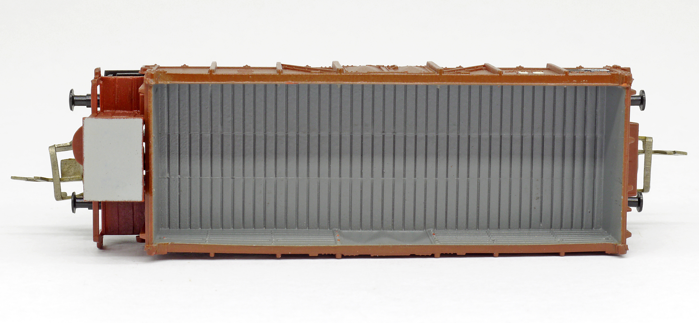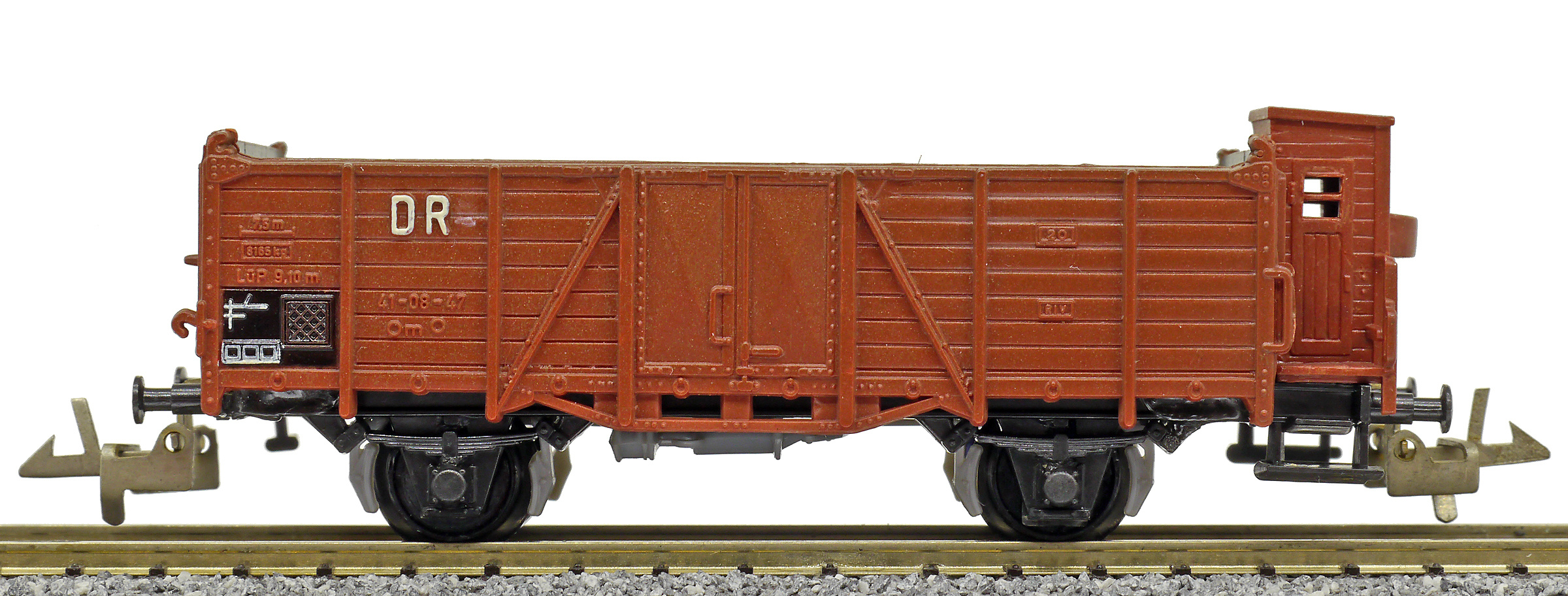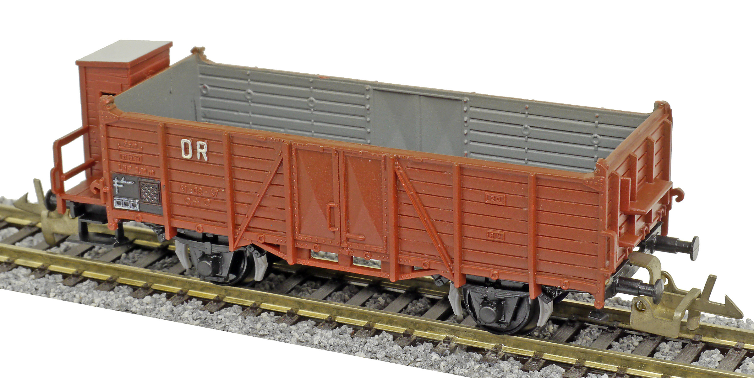 | otevřený nákladní vůz červenohnědý s brzdařskou budkou |