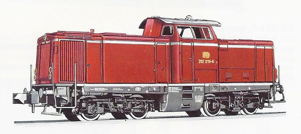 | dieselová lokomotiva červená s bílou linkou, šedá střecha, rám a pojezd |