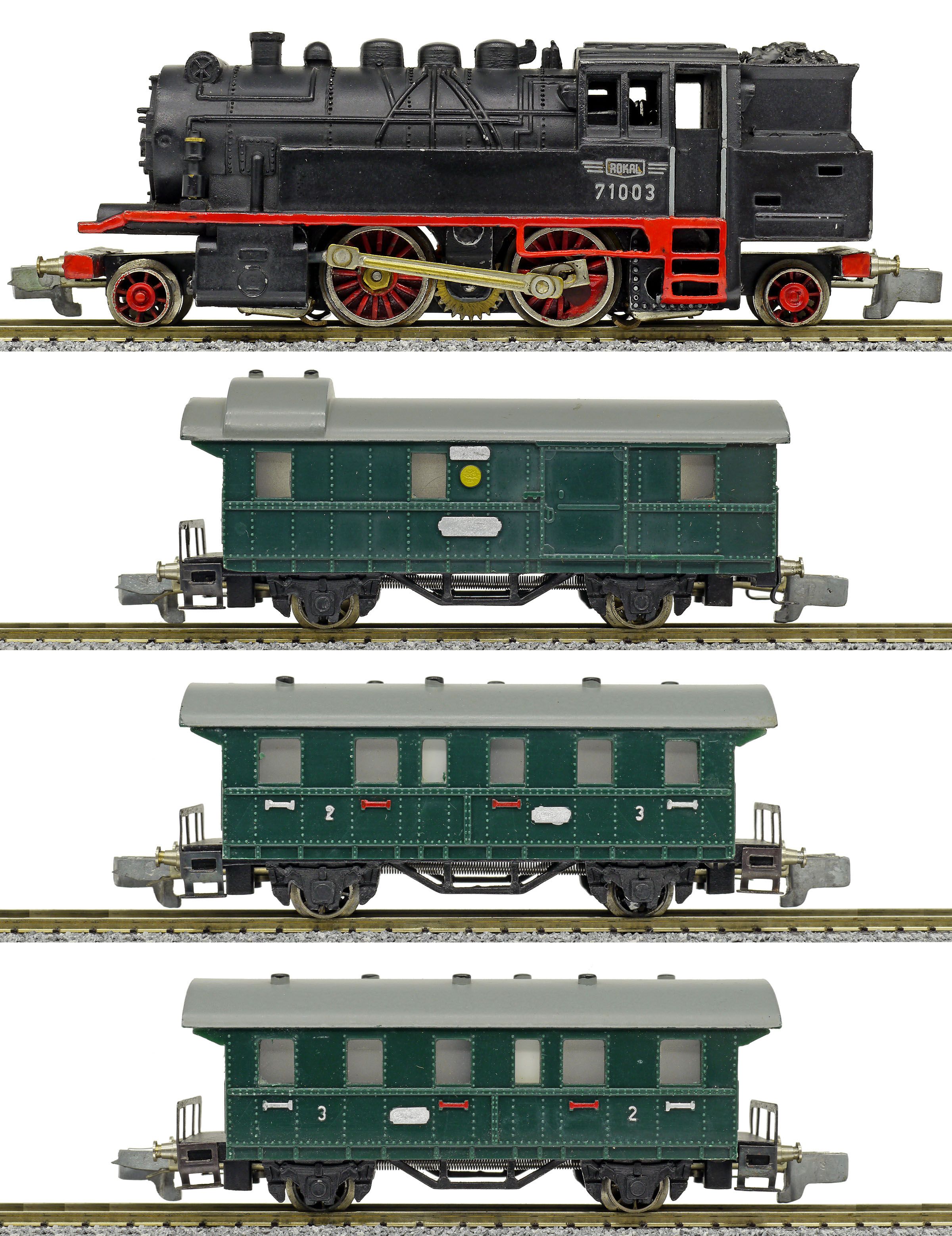 | set parní lokomotivy BR 71, zavazadlového vozu a dvou osobních vozů 2./3. tř. |