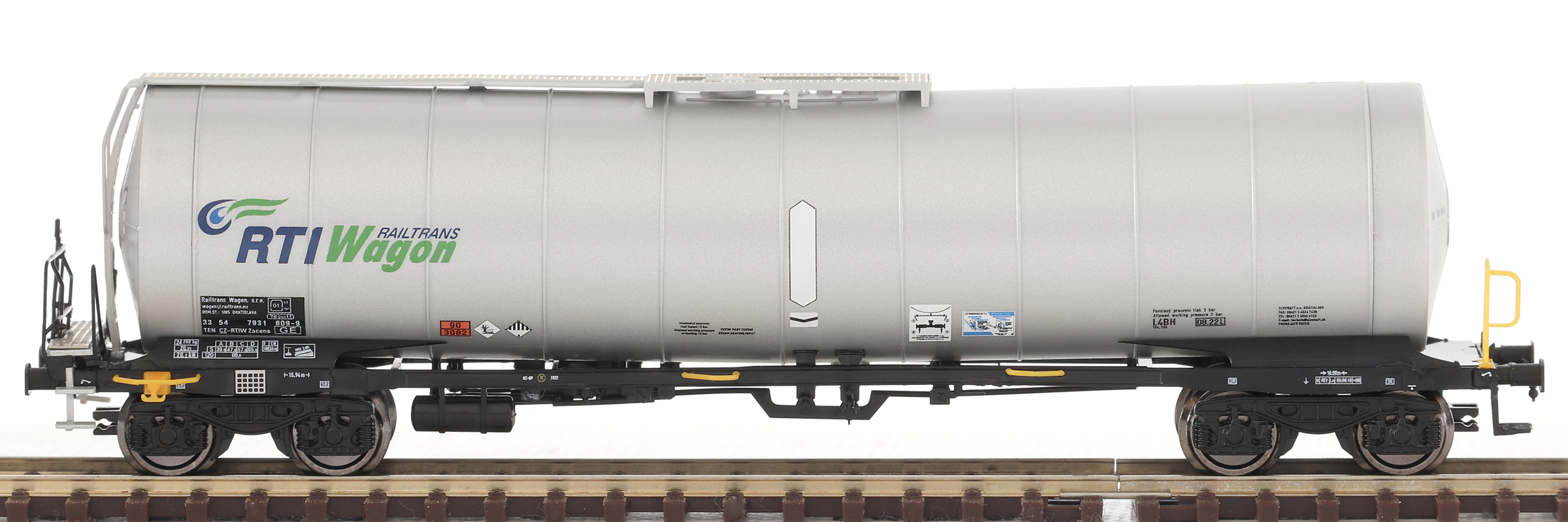 | kotlový vůz šedý s logem „RTI Wagon Railtrans“ |