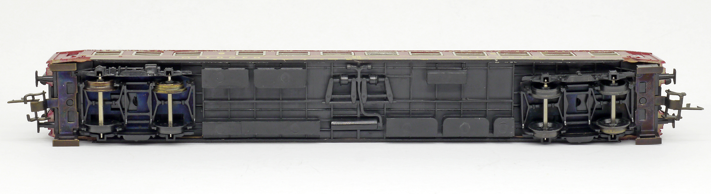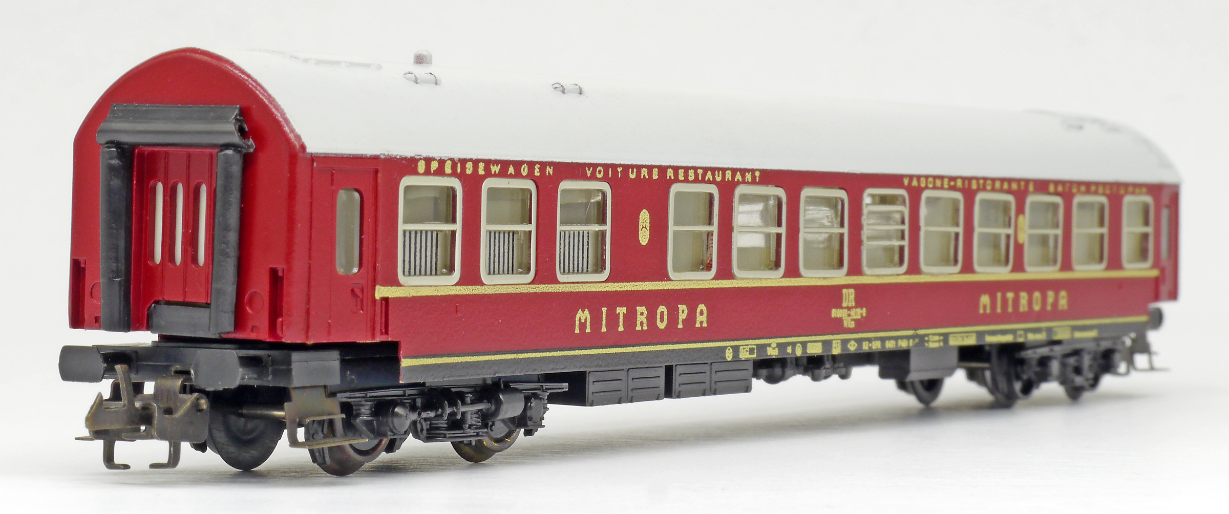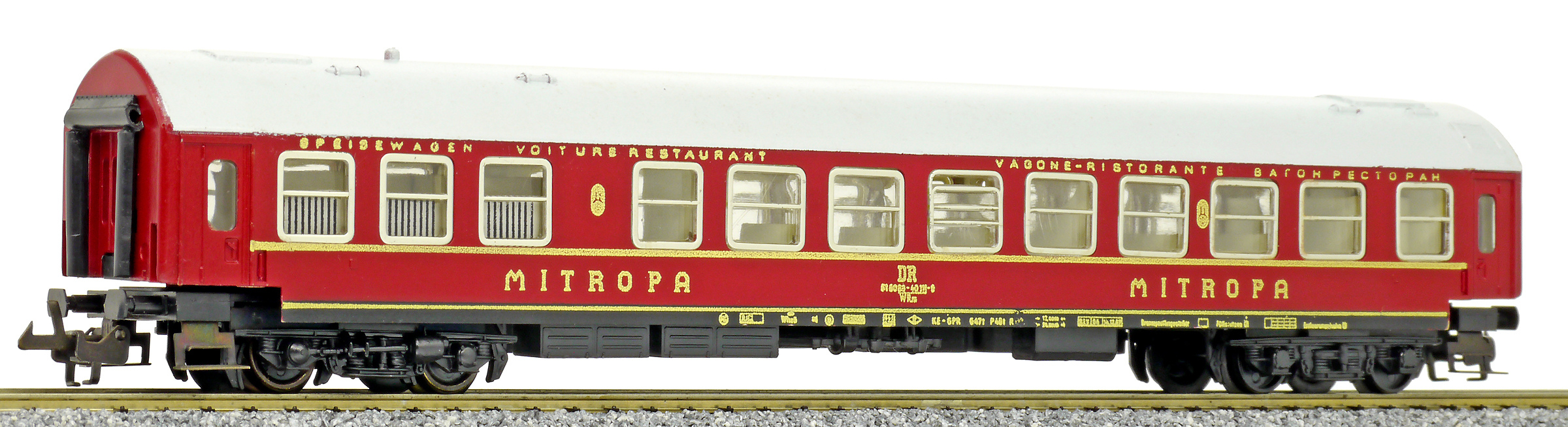| jídelní vůz červený s šedou střechou jídelní „MITROPA“ |