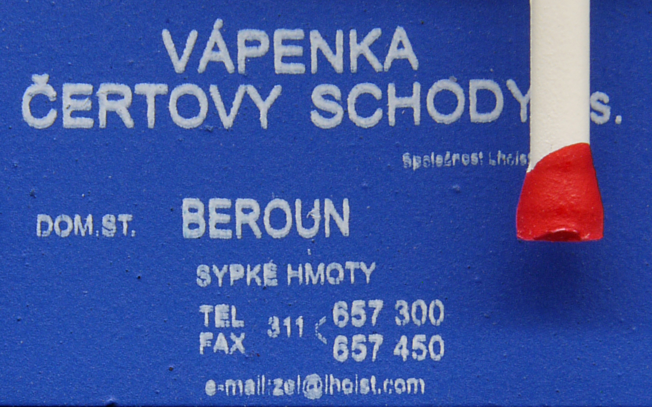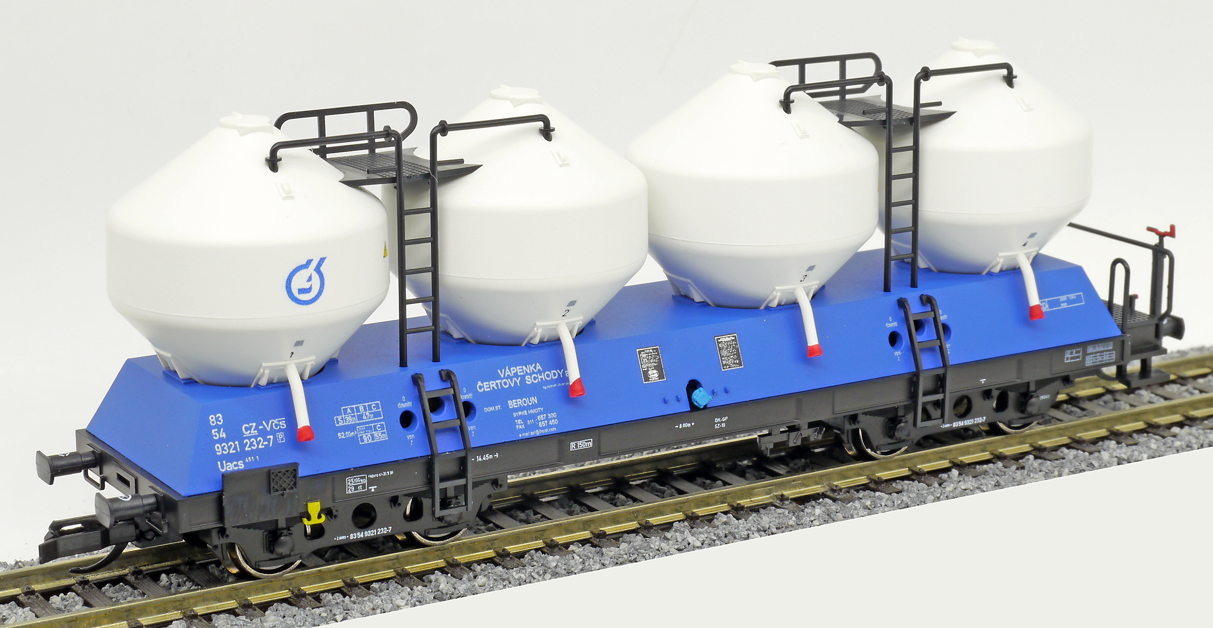| nákladní samovýsypný vůz modrý s bílými nádobami „Vápenka Čertovy schody“ |