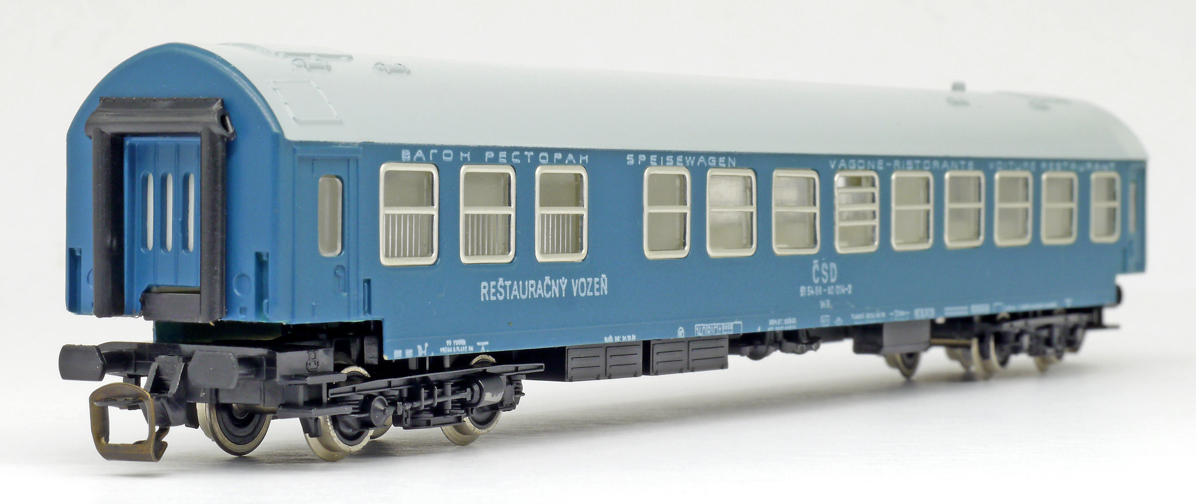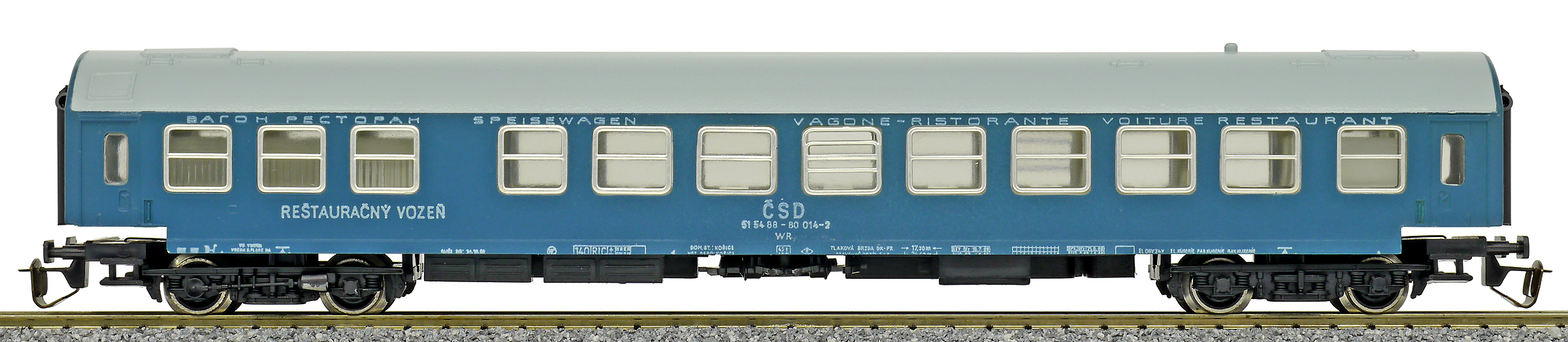 | jídelní vůz modrý s šedou střechou |