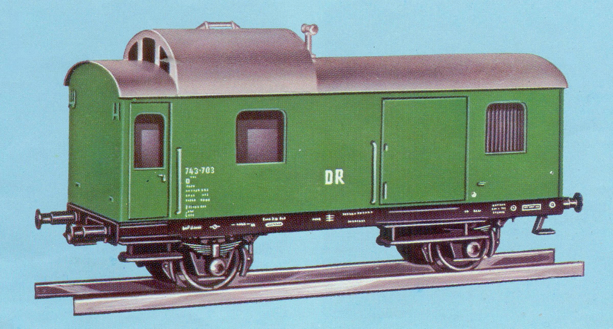 služební vůz pro nákladní vlaky zelený s šedou střechou