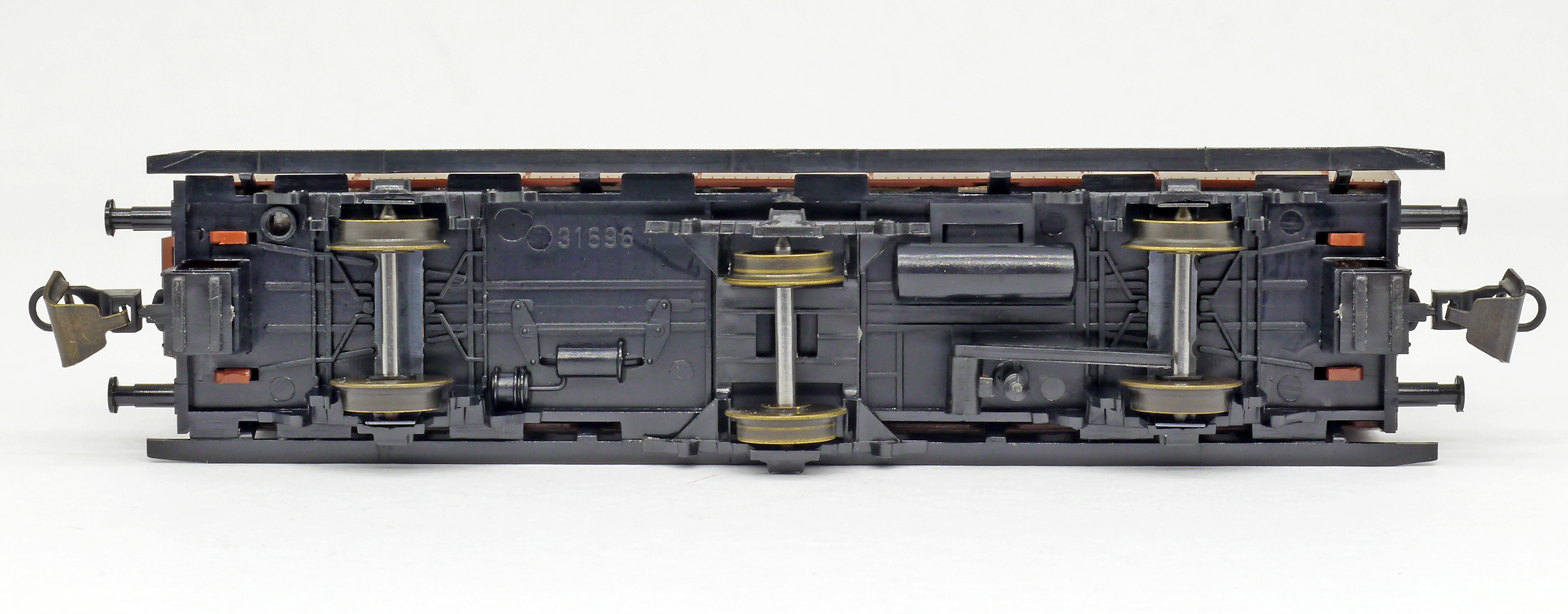 oddílový osobní vůz červený s černou střechou a s brzdařskou budkou 3. tř.