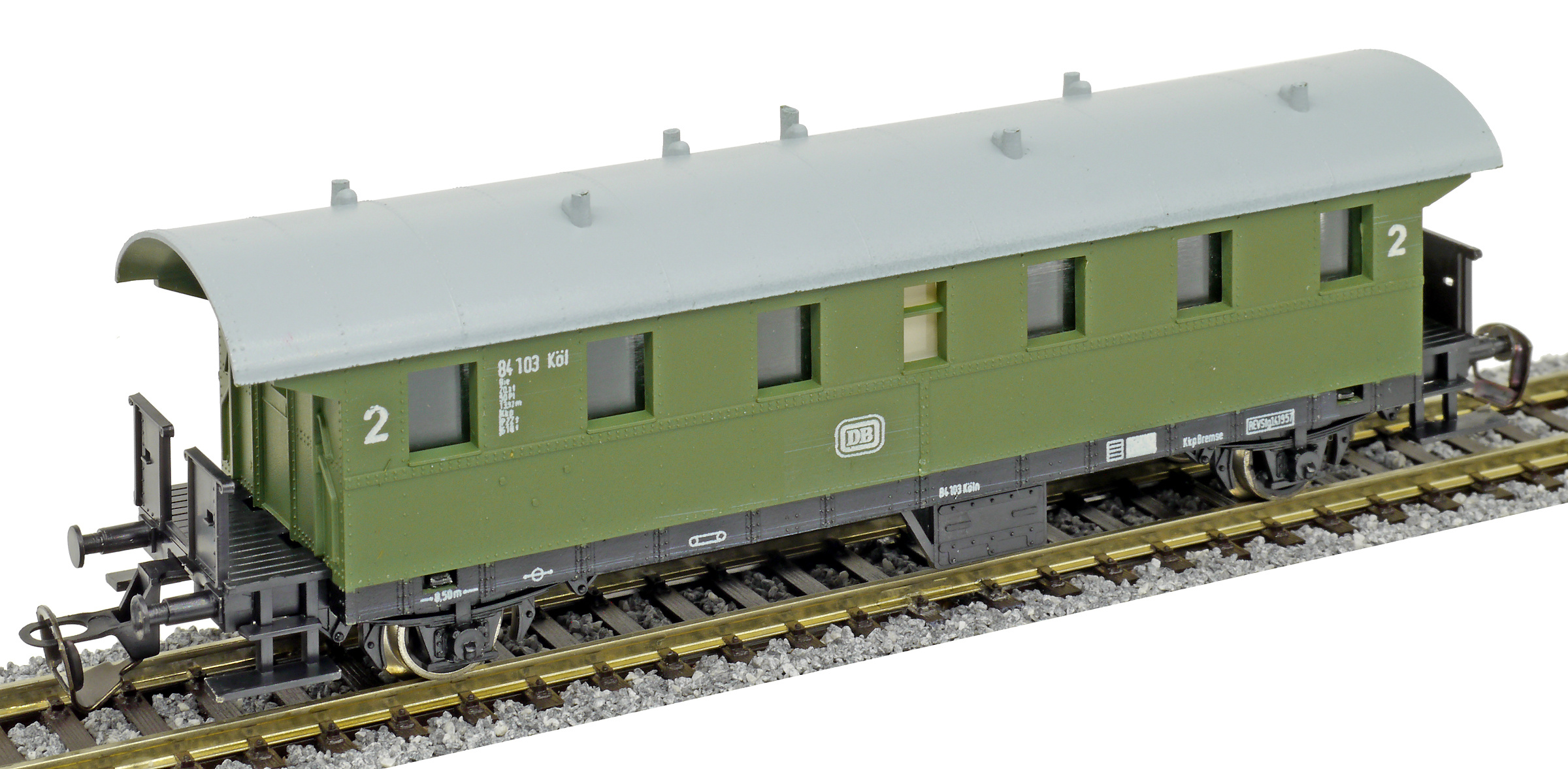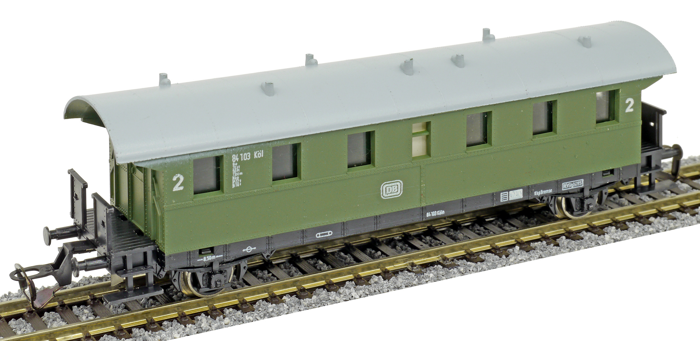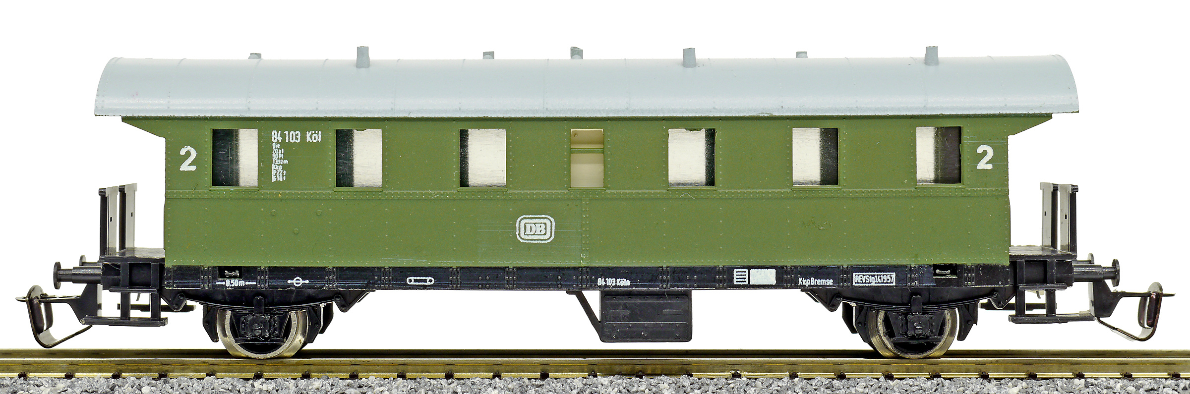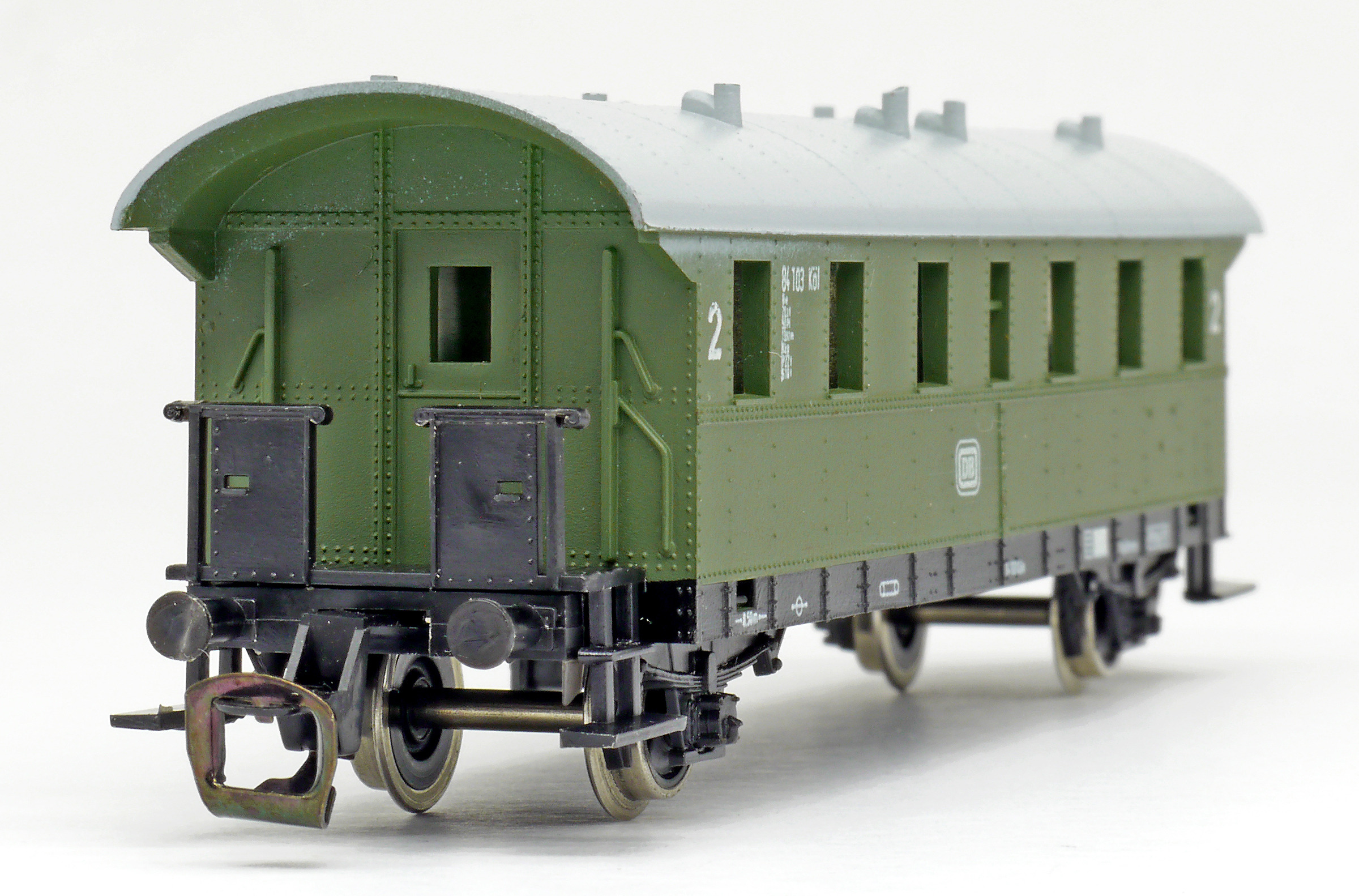 osobní vůz zelený se světle šedou střechou 2. tř.