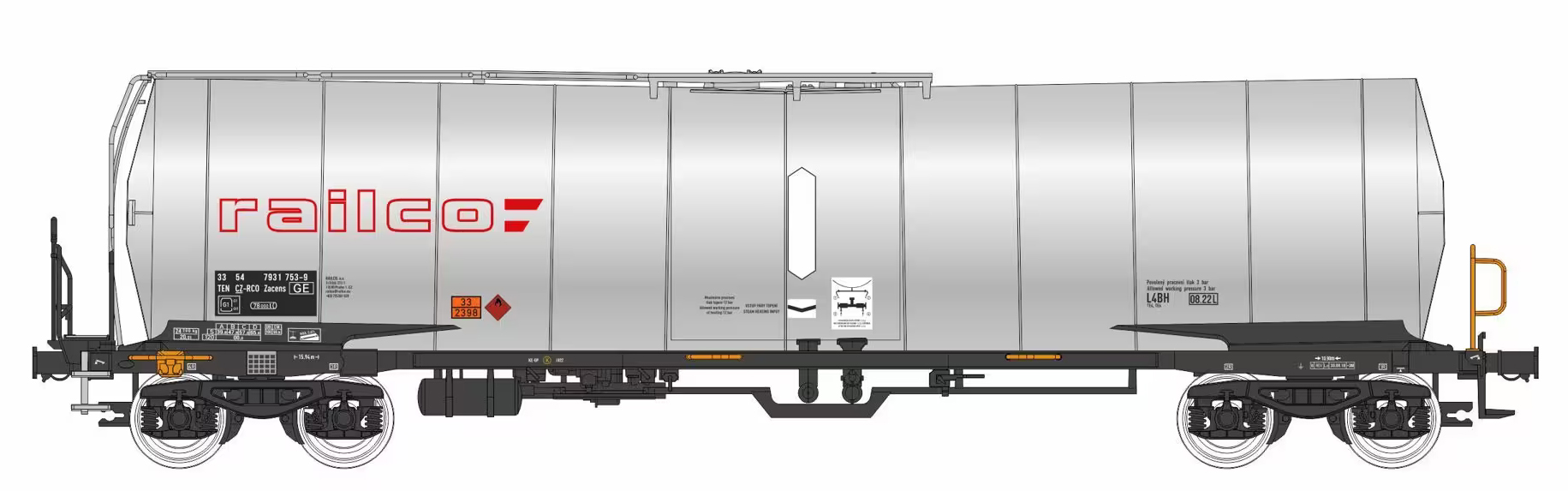 | kotlový vůz stříbrný s logem „Railco“ |