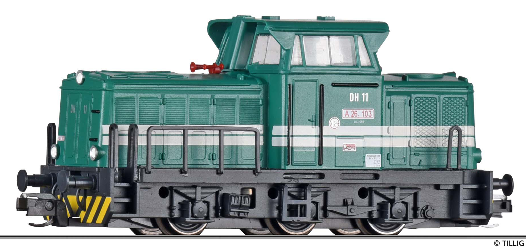 Popis   dieselová lokomotivy zelená s proužky, černý rám a šedý pojezd